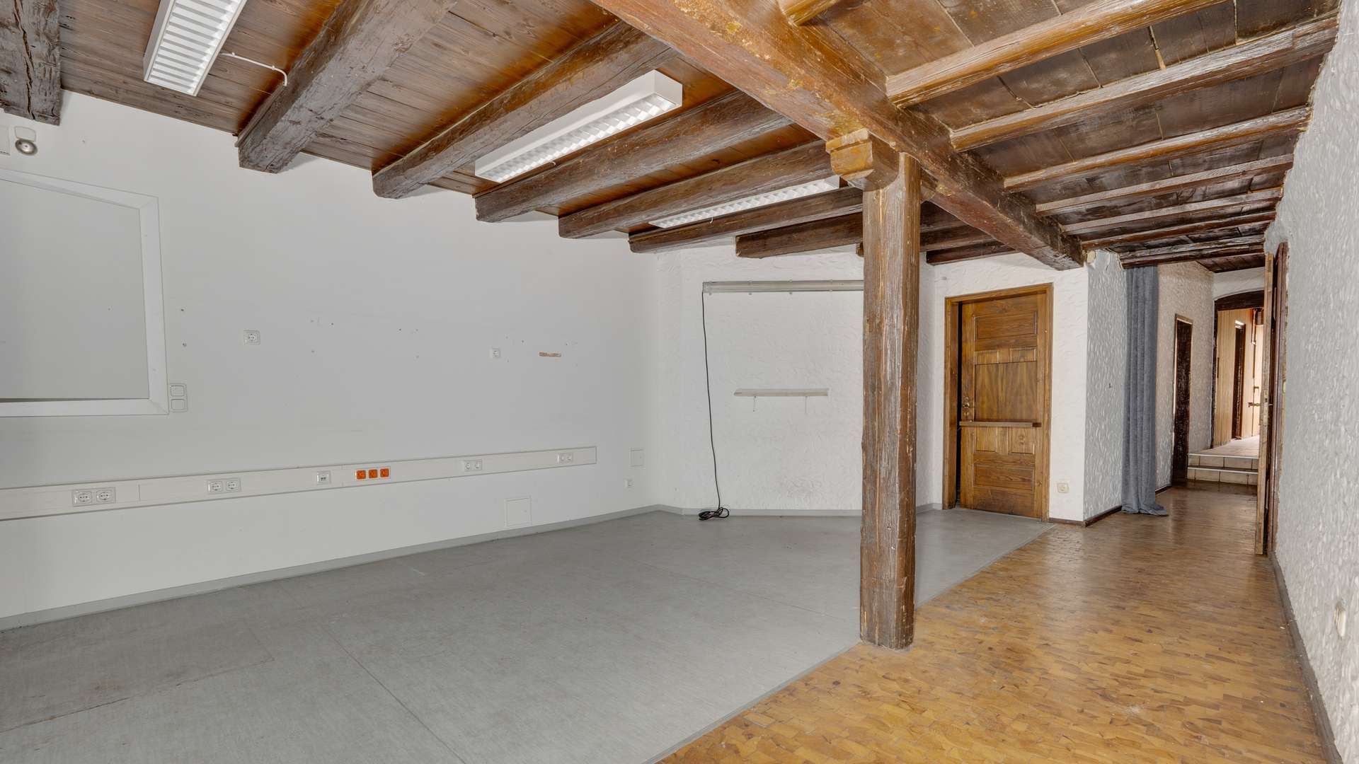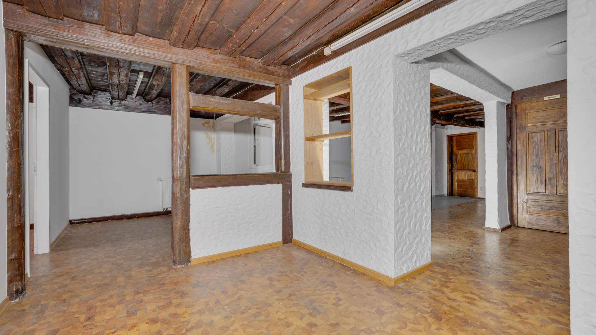 Im Erdgeschoss erwartet Sie eine 111 m² große Ladeneinheit mit zwei abgetrennten Büros im hinteren Bereich und einer Verbindung zum Obergeschoss. Die erste Etage bietet eine vielseitig nutzbare Bürofläche von 160 m², bestehend aus fünf Zimmern, einer separaten Küche sowie getrennten Sanitäreinrichtungen. Das Dachgeschoss umfasst 130 m², die sich ideal für den Ausbau in Wohneinheiten oder weitere Büroräume eignen. Der Dachboden selbst bietet entweder wertvolle Abstellfläche oder die Möglichkeit, durch Öffnung die Deckenhöhe im Dachgeschoss zu erhöhen – Flexibilität pur. Dank des vollständigen Leerstands sind alle Einheiten sofort verfügbar und projektierbar.