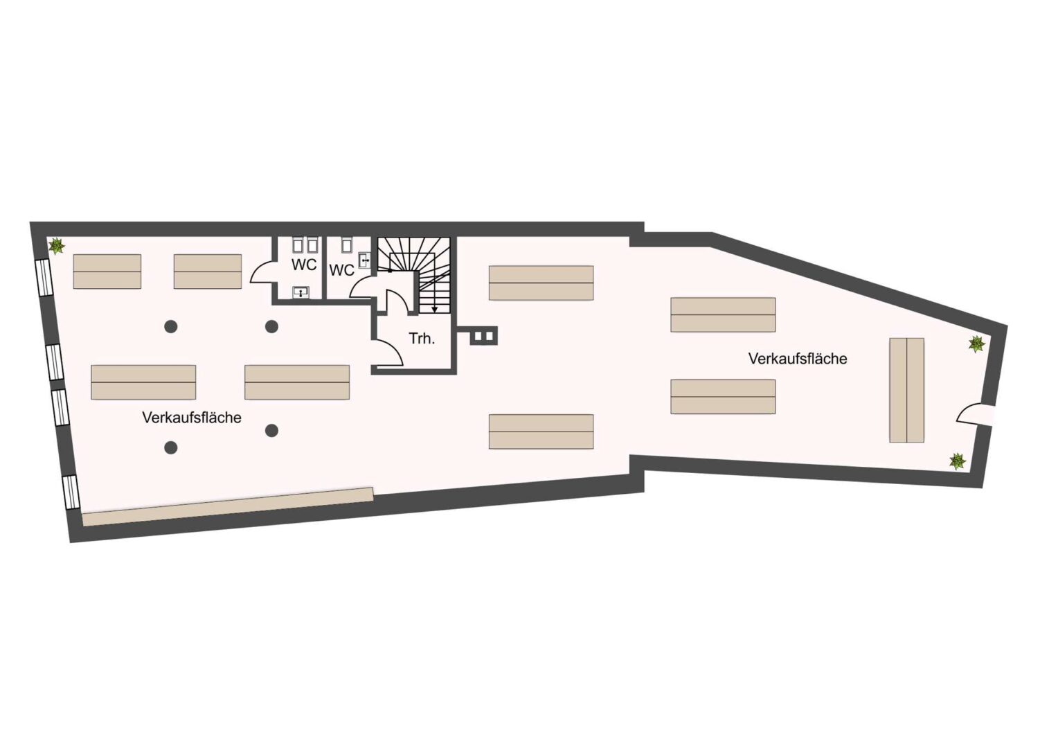 Im Erdgeschoss befindet sich eine repräsentative 225m² Gewerbefläche in absoluter Prestigelage. Die gesamte Einheit wurde im Jahr 2021 umfangreich saniert und ist an einen solventen, langjährigen Mieter vermietet. Das erste Obergeschoss bietet eine weitere, derzeit leerstehende Gewerbefläche mit einer Gesamtgröße von 261m², die sich ideal für neue Nutzungen eignet. Im zweiten Obergeschoss stehen aktuell 180m² Lagerfläche zur Verfügung, die für Umbauten und eine neue Nutzung prädestiniert ist. Das Dachgeschoss ist ebenfalls leerstehend und umfasst weitere 67m² Lagerfläche. Bei der Ermittlung der Lagerflächen wurden die Dachschrägen bereits berücksichtigt. Diese klare Gliederung eröffnet flexible Optionen für eine Umgestaltung oder Umnutzung der oberen Etagen. Vorstellbar ist eine Kombination aus Wohnungen und Büros, die sich perfekt in die derzeitigen Schnitte der Etagen integrieren lassen.