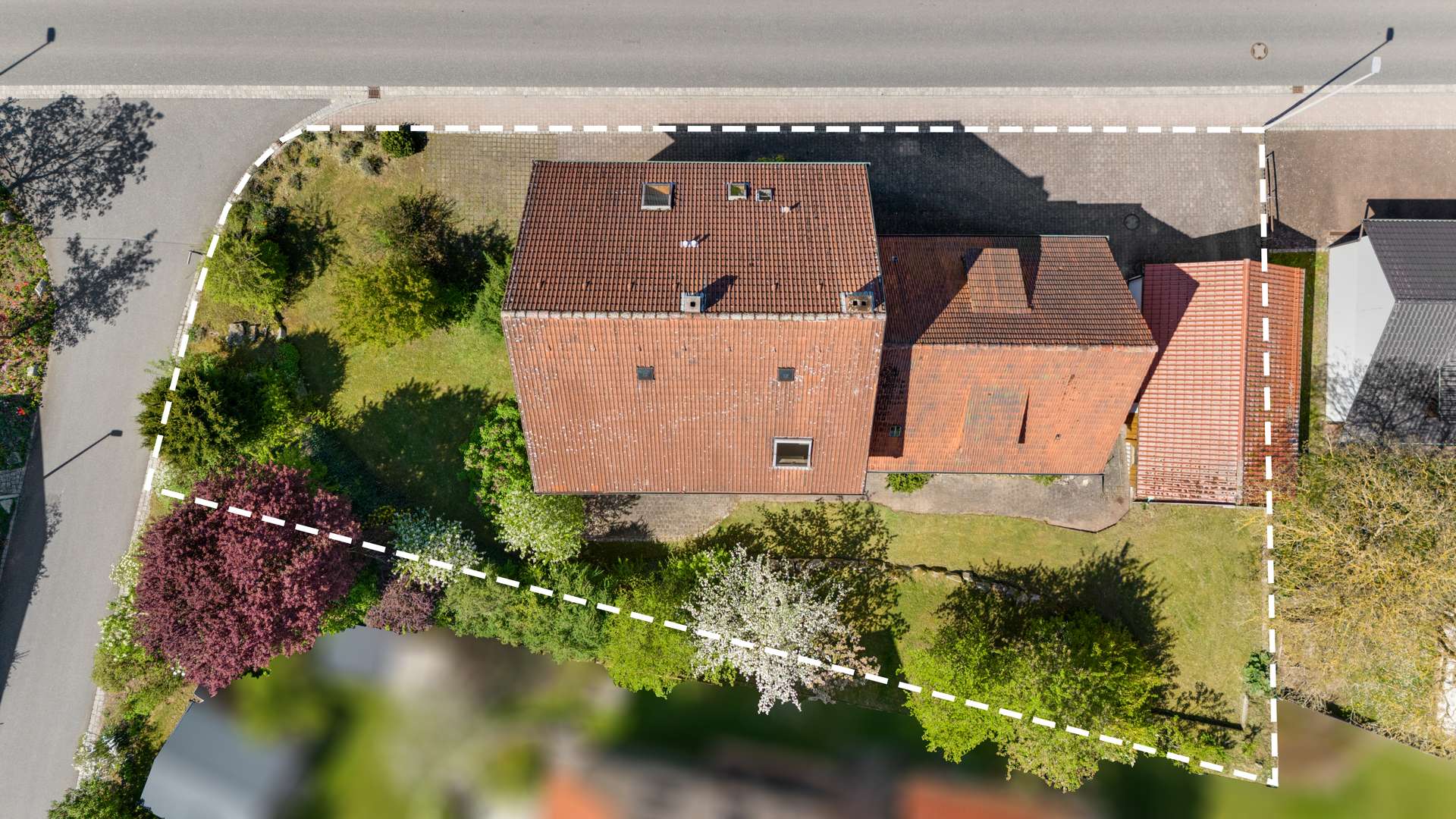 Das Haus erstreckt sich über drei Etagen und bietet insgesamt 243,55m² Wohnfläche. Zwei separate Wohneinheiten sind bereits fertiggestellt, eine dritte kann im Nebenhaus realisiert werden. Das 1.095m² große Grundstück vereint großzügige gepflasterte Flächen vor dem Haus mit einem schön angelegten Garten auf zwei Ebenen im rückwärtigen Bereich. Eine Doppelgarage mit elektrischen Toren (Zapf, Baujahr 2001) ergänzt das Raumangebot, dazu stehen vor der Garage und dem Haus zahlreiche Stellplätze zur Verfügung. Das Haupthaus wurde 1981 bis zum Erdgeschoss abgetragen und vollständig neu aufgebaut sowie aufgestockt – samt geänderter Firstrichtung zur optimalen Integration ins Ortsbild.