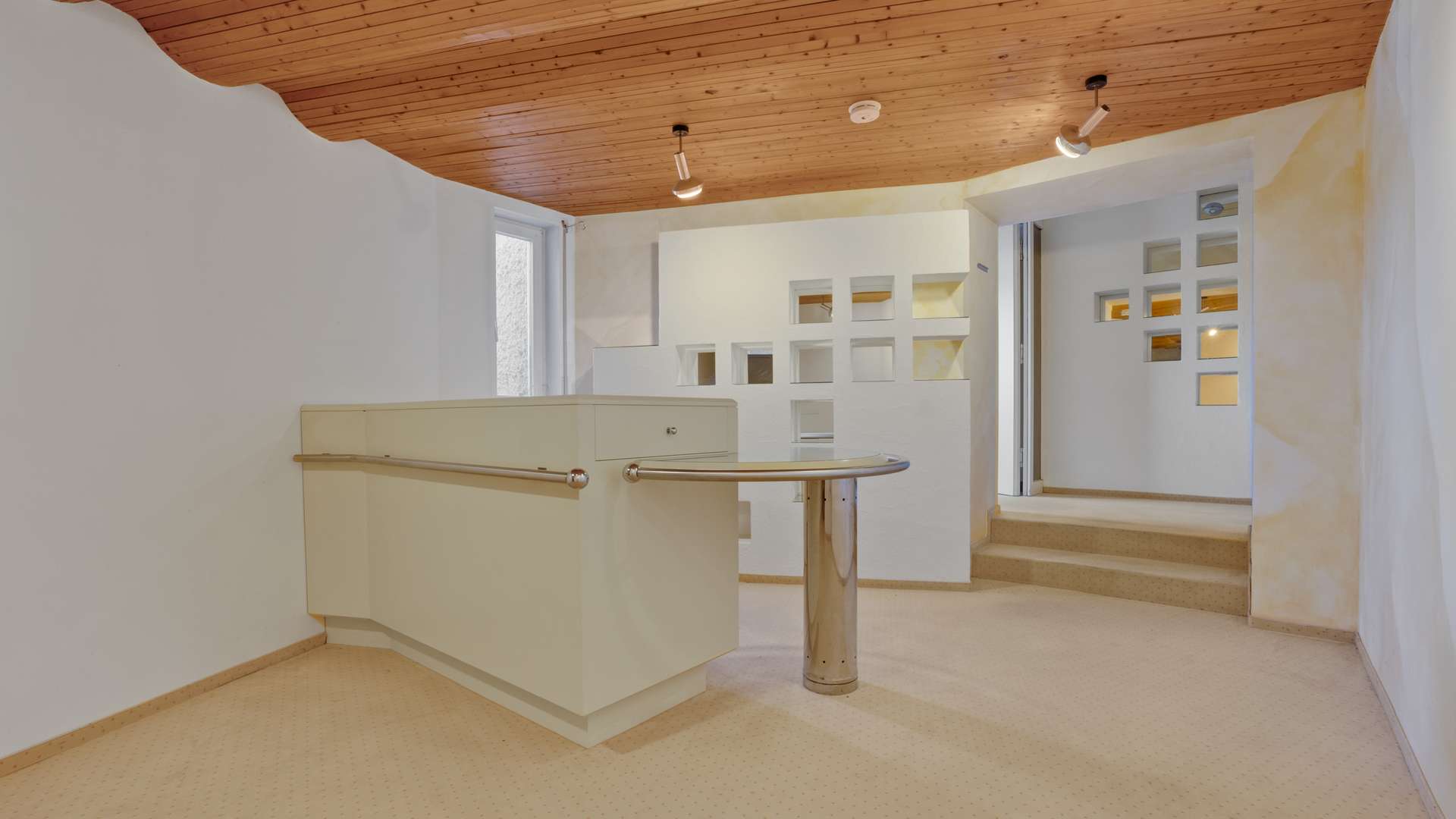 Der separate Bürotrakt mit zwei Räumen (20m² und 50m²) sowie eigenem Empfangsbereich schafft ein professionelles Arbeitsumfeld in exklusiver Atmosphäre.