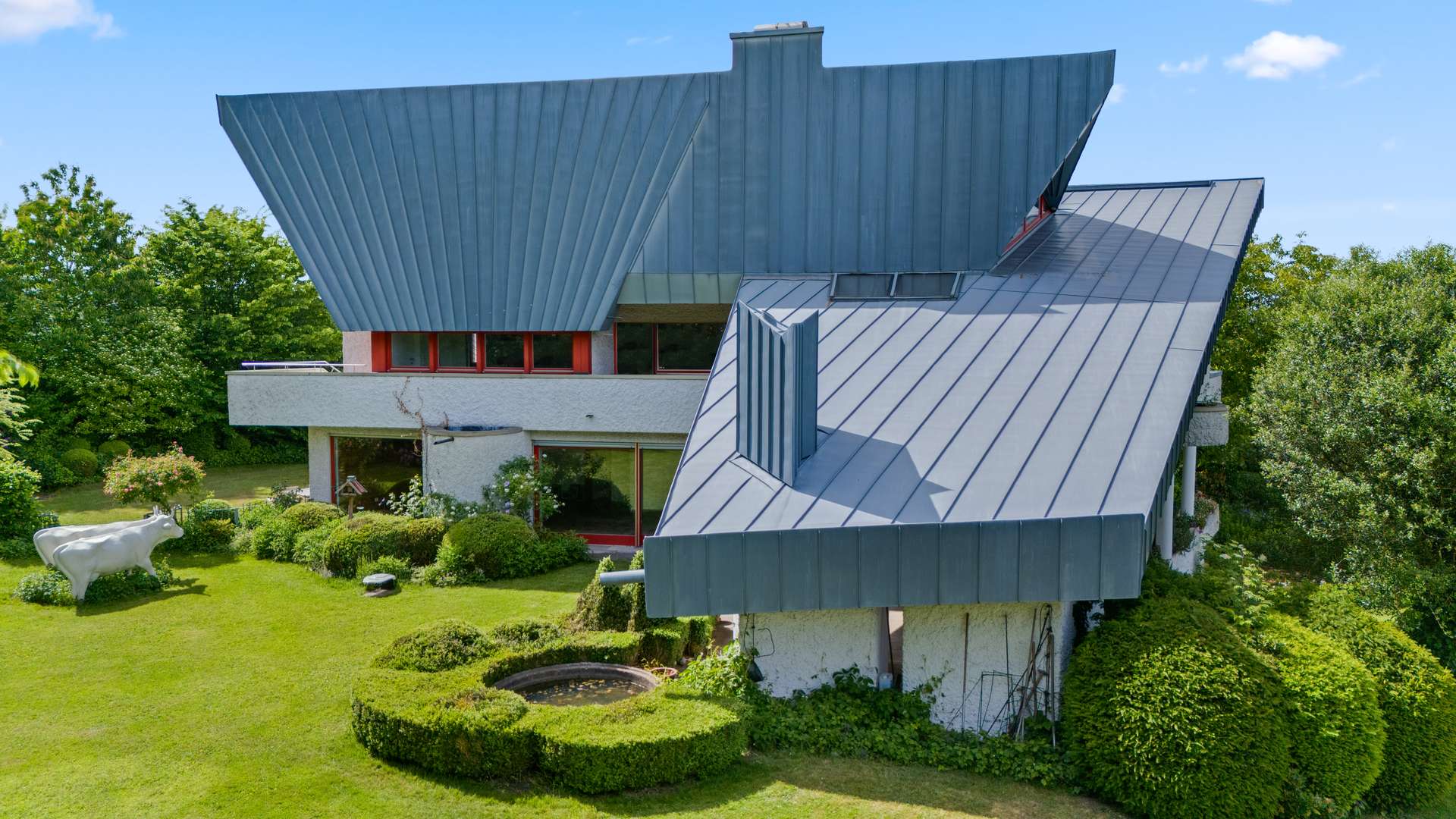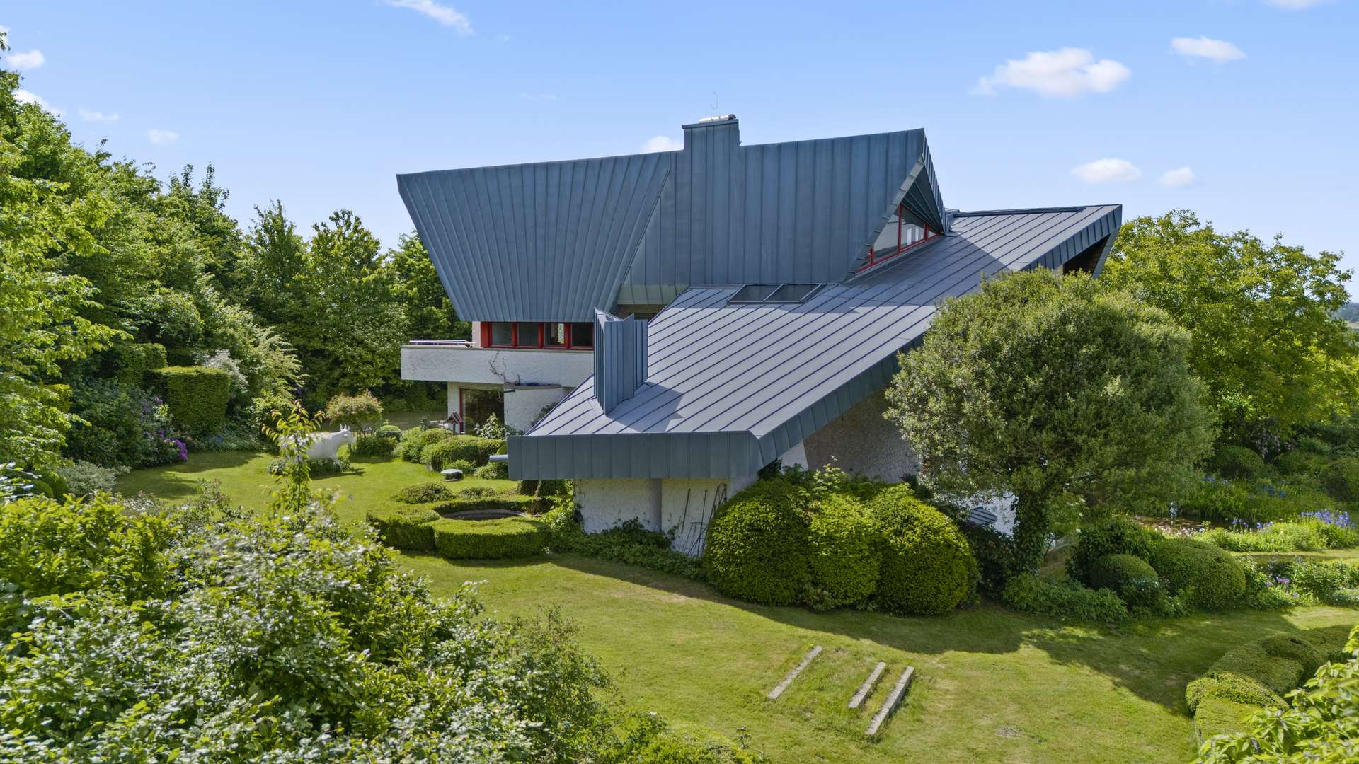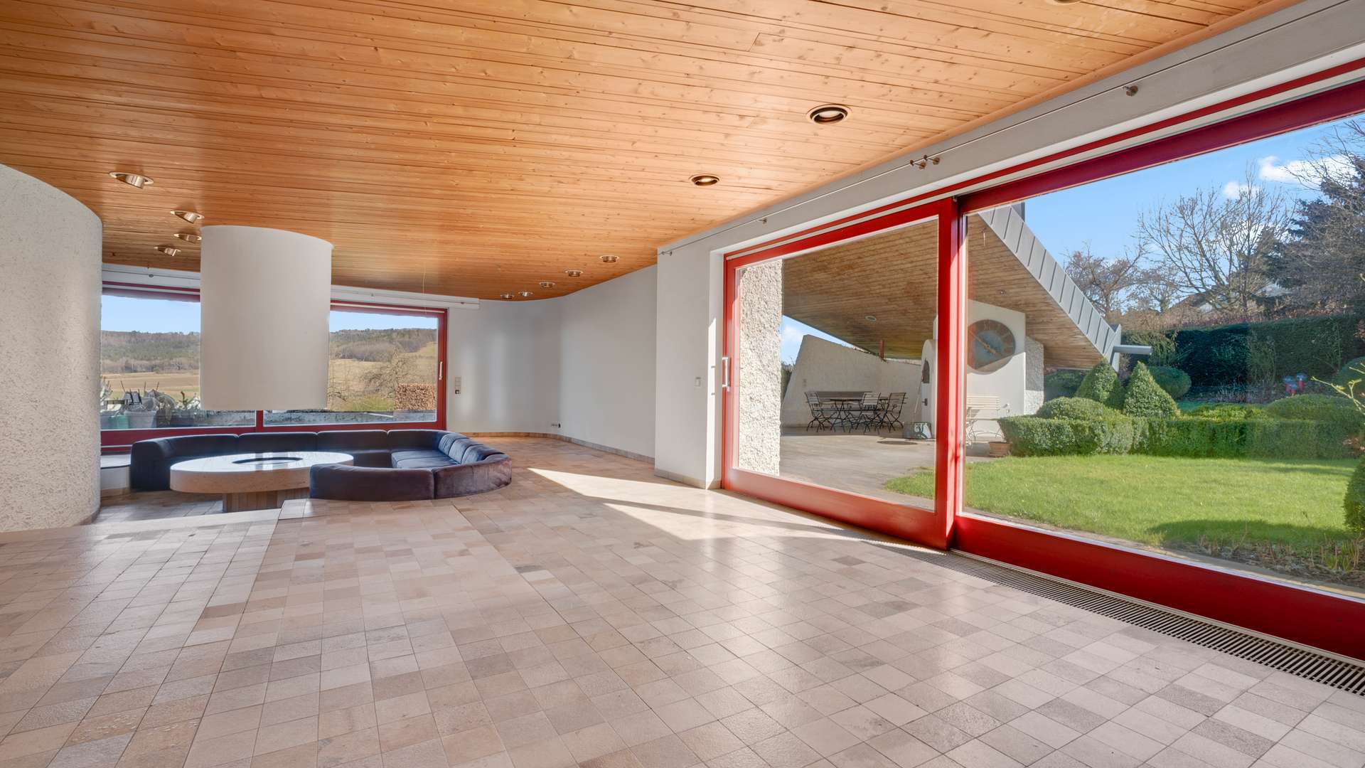 Die von Architekt Bruno Rehm entworfene Villa beeindruckt mit klarer Formsprache, großzügiger Raumaufteilung und hochwertigen Materialien. Die exquisite Gartenanlage – gestaltet von einer renommierten Landschaftsarchitektin – gleicht einem privaten Park mit altem Obstbaumbestand, Buchsbaumskulpturen und blühenden Pflanzinseln in Rosé- und Fliedertönen. Zahlreiche Terrassen bieten Rückzugsorte zu jeder Tageszeit. Es liegt bereits eine Anfrage von Neunkirchen vor, dass die Villa wegen Ihrer besonderen Architektur in das Denkmalschutzverzeichnis aufgenommen wird. Dies hätte steuerliche Vorteile für den Käufer im Zuge der Renovierung. Die Entscheidung darüber wird dem Käufer überlassen.