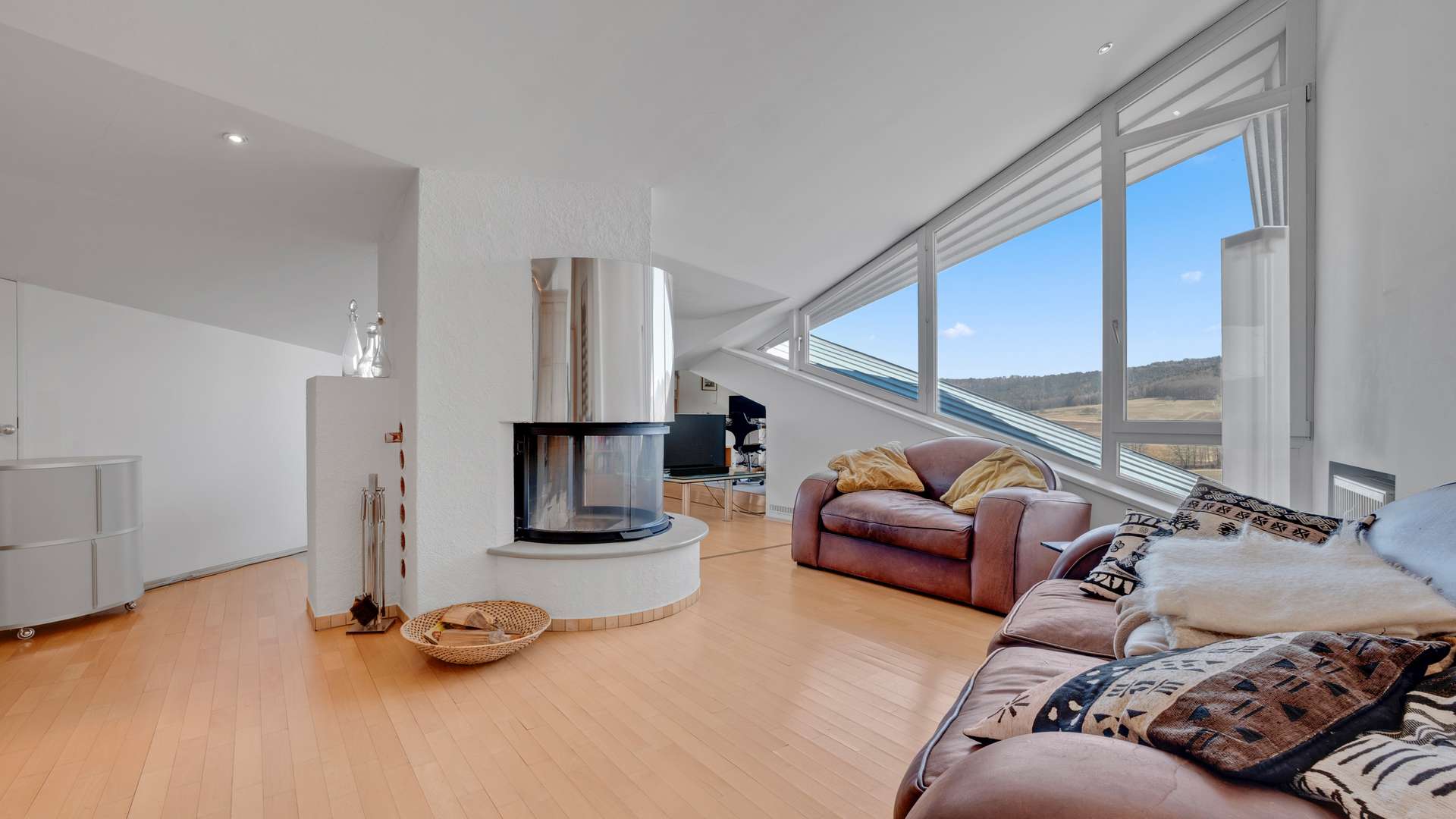 Die separate Einliegerwohnung über zwei Etagen bietet höchsten Wohnkomfort mit lichtdurchflutetem Wohnraum, zwei Balkonen, Kamin, hochwertiger Küche und elegantem Bad.