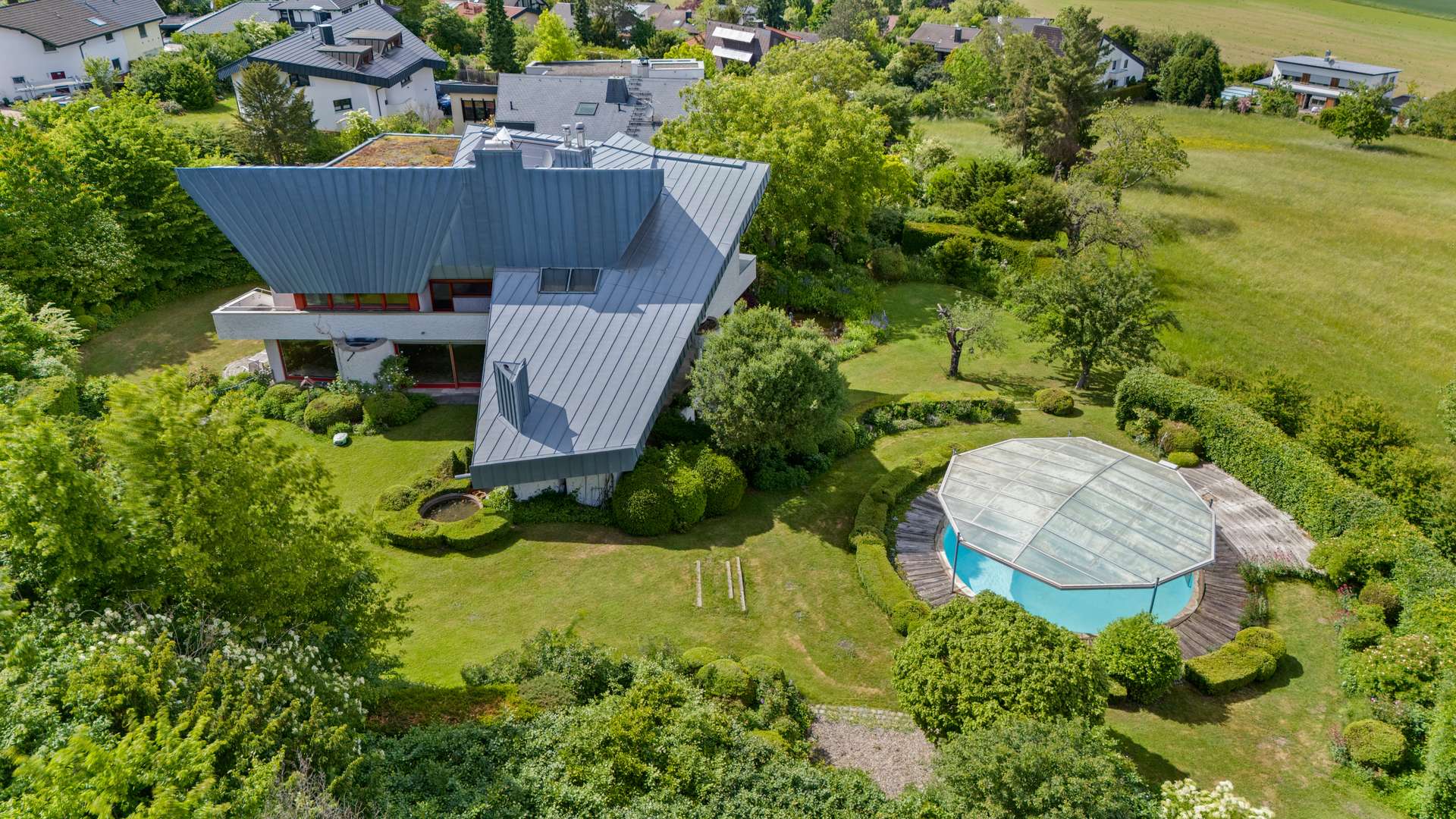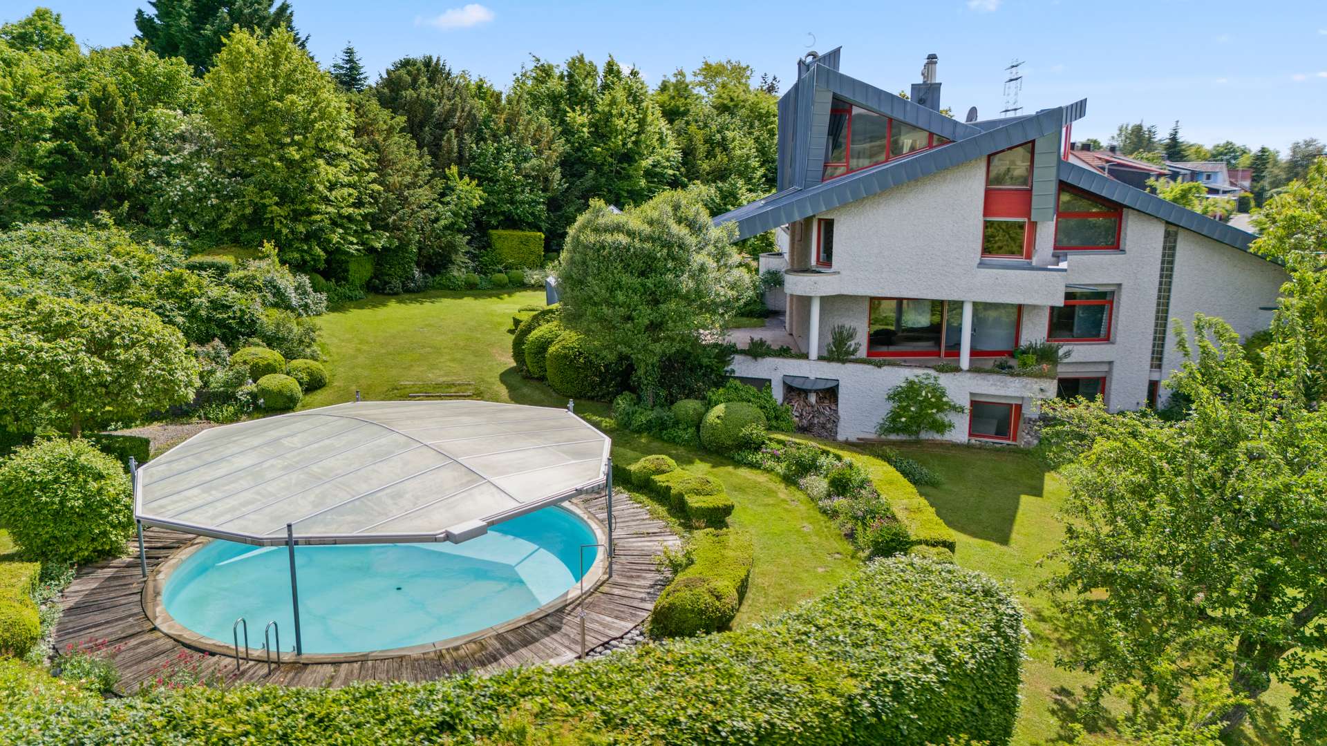 Exklusive Architektenvilla mit Parkgrundstück, Poolanlage & Panoramablick – Wohnen & Arbeiten auf höchstem Niveau