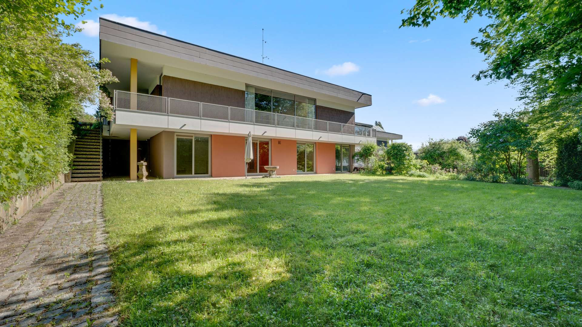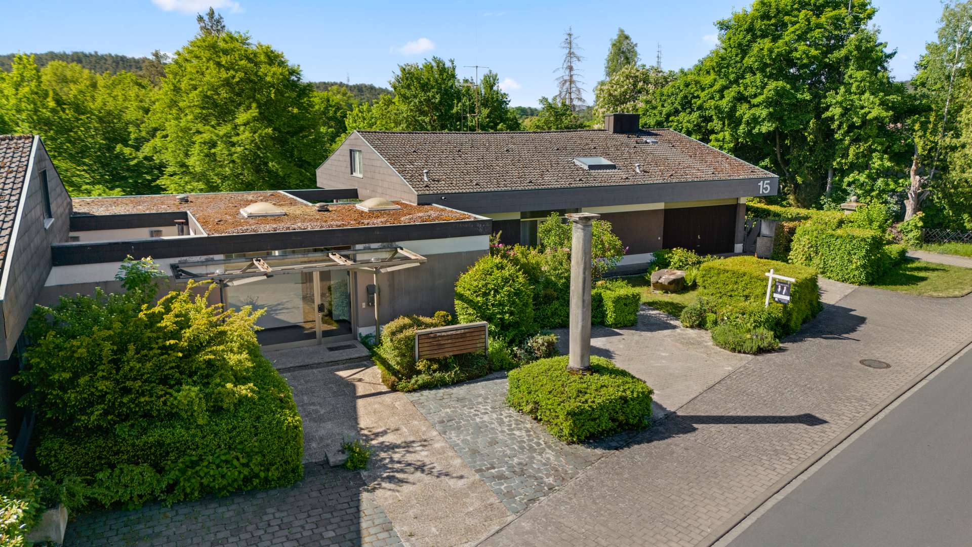 Das Haupthaus mit 290,44 m² Wohnfläche und das angrenzende zweite Gebäude mit 216,63 m² Fläche fügen sich harmonisch in das aufwendig gestaltete Gesamtgrundstück ein. Beide Häuser verfügen über separate Zugänge und können autark genutzt werden – ideal für ein flexibles, zukunftsorientiertes Nutzungskonzept. Der Garten wurde professionell angelegt und überzeugt mit dichtem Baumbestand, einer blickdichten Buchenhecke sowie mehreren Terrassenflächen. Vor dem Ensemble stehen insgesamt bis zu sieben Außenstellplätze zur Verfügung, zusätzlich bietet das Haupthaus eine großzügige Doppelgarage.