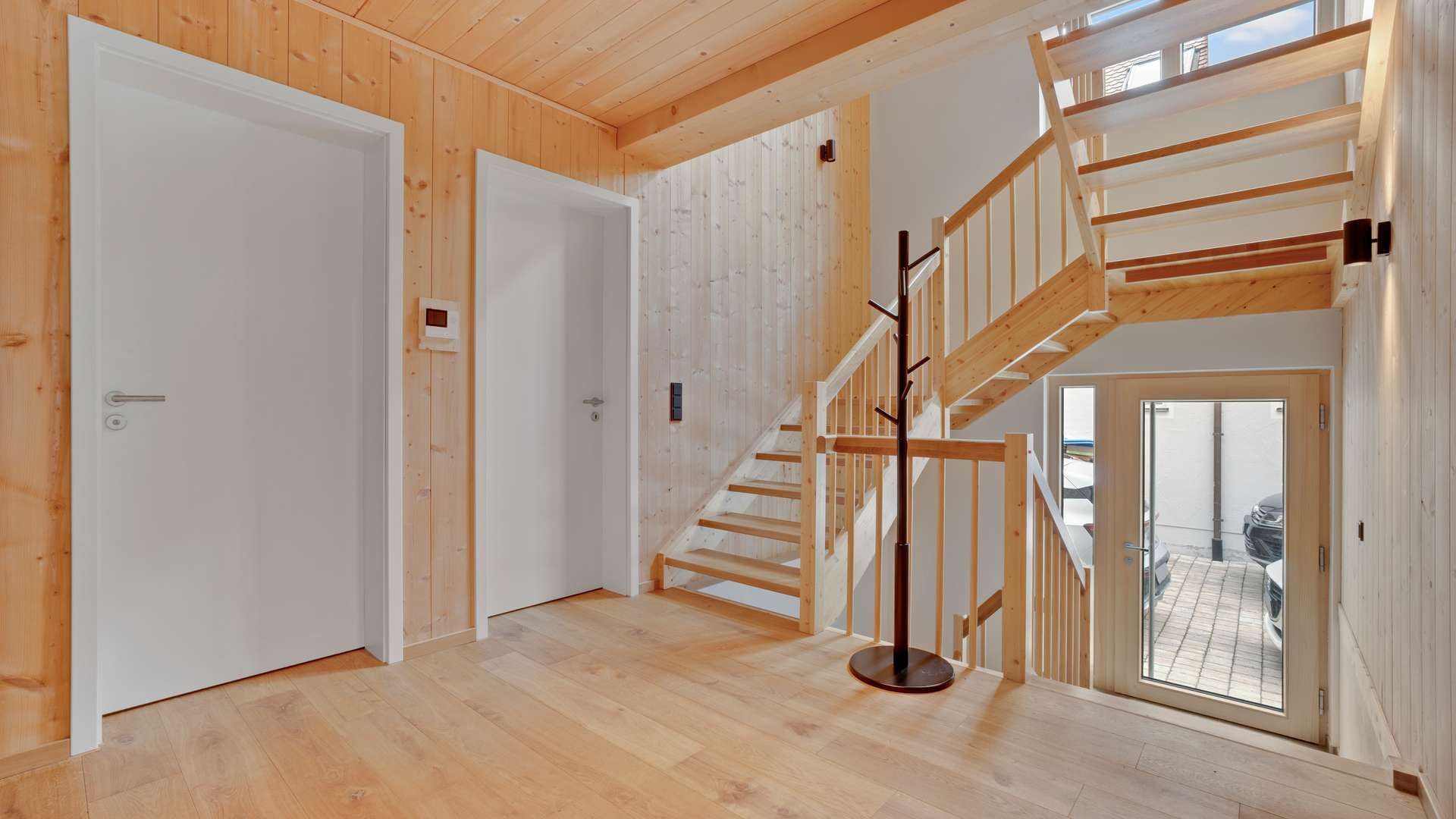 Das 2021 errichtete Mehrparteienhaus umfasst nur neun Wohneinheiten und ist vollständig barrierefrei erschlossen. Die energieeffiziente Massivholz-Bauweise verbindet nachhaltige Architektur mit einem wohngesunden Raumklima. Verarbeitet wurden ausschließlich hochwertige, natürliche Materialien wie Fichten- und Tannenholz sowie Massivholzdielen, die eine warme, naturnahe Atmosphäre schaffen – ideal auch für Allergiker. Das Heizsystem arbeitet mit wohltuender Strahlungswärme über Wandtemperierung, was für ein besonders behagliches Wohngefühl sorgt. Ergänzt wird das Konzept durch eine zentral abschaltbare Stromversorgung, bei der wichtige Verbraucher wie Kühlschrank oder Server ausgenommen bleiben. Dreifach isolierverglaste Holz-Alu-Fenster mit elektrischen Raffstores, eine Wärmepumpe mit Erdwärme sowie eine Photovoltaikanlage mit Batteriespeicher sichern eine überwiegend autarke Energieversorgung. Mit der Energieeffizienzklasse A+ und einem durchgängig barrierefreien Konzept ist das Gebäude zukunftsweisend – ein idealer Lebensmittelpunkt, der auch langfristig Komfort und Sicherheit bietet.