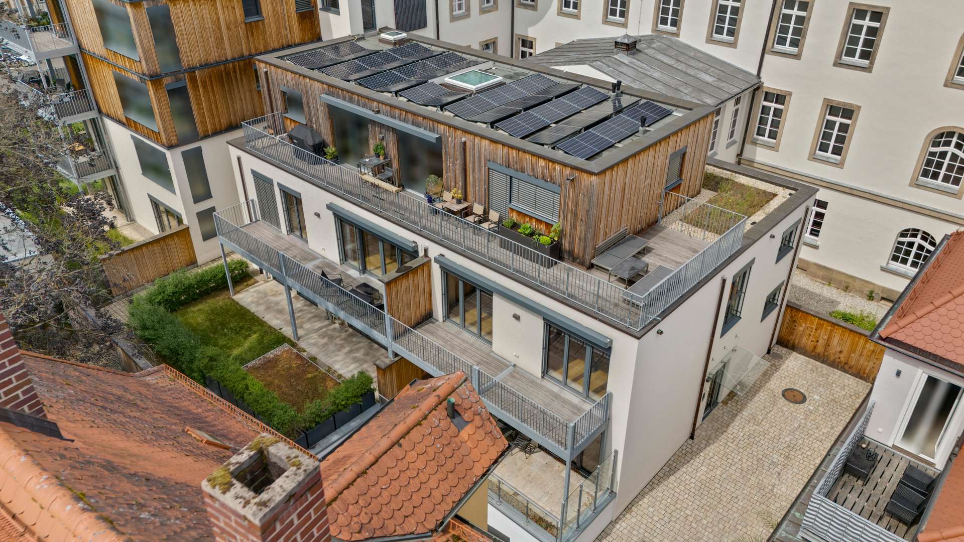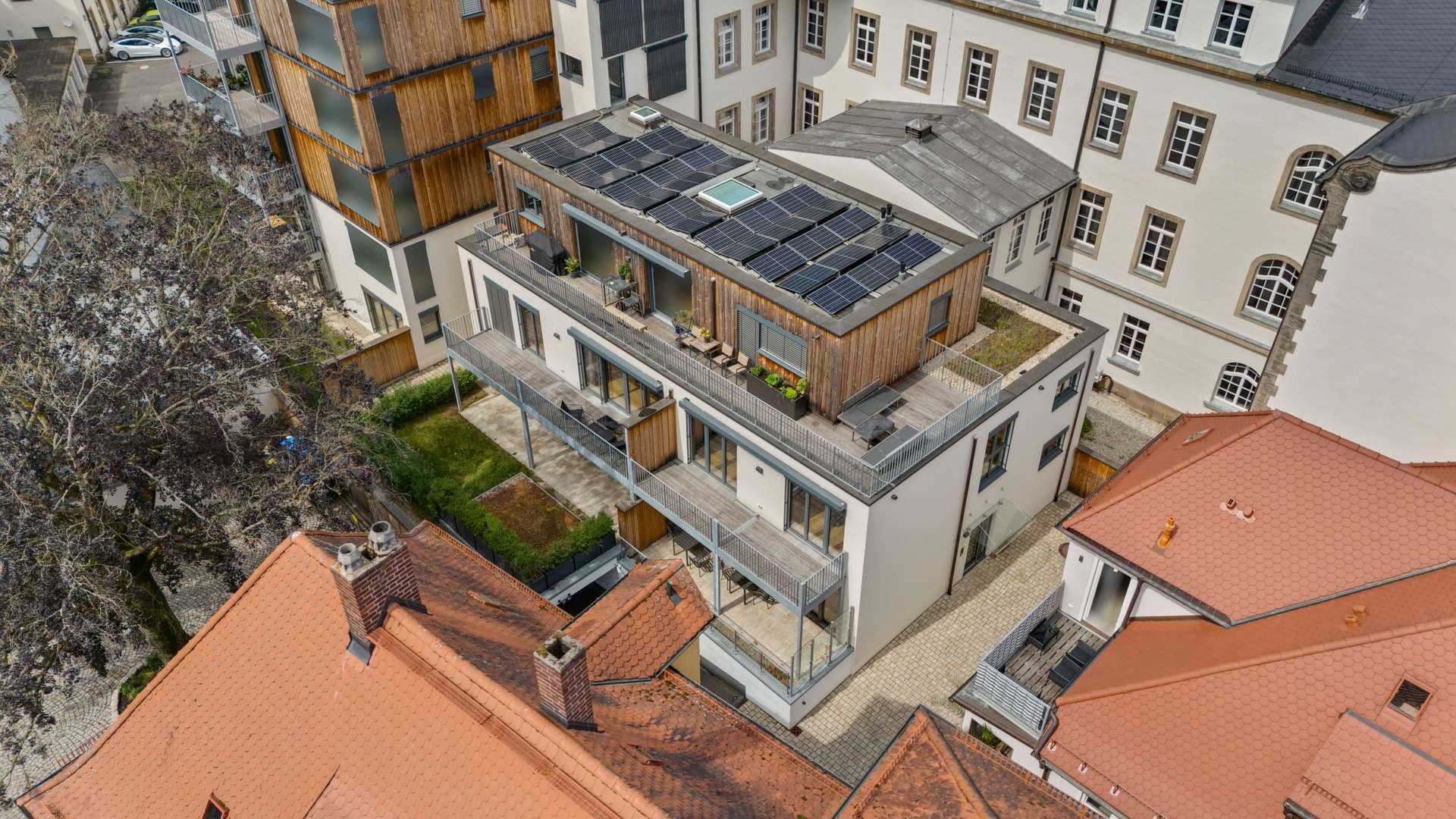 Ein seltenes Juwel mitten in der Bayreuther Innenstadt: Diese traumhafte 5-Zimmer-Maisonettewohnung vereint exklusives Wohnen auf zwei Ebenen mit außergewöhnlicher Ruhe in historischer Lage – direkt am Neuen Schloss und dem Hofgarten, jedoch zurückversetzt in zweiter Reihe. Die großzügige Terrasse und der sonnige Süd-West-Balkon bieten Privatsphäre und Entspannung mitten im Stadtzentrum. Mit eigenem Hauseingang, beeindruckender Raumhöhe und lichtdurchfluteten Wohnbereichen entsteht das Gefühl eines eigenen Stadthauses. Die ökologische Massivholz-Bauweise (Baujahr 2021) garantiert nachhaltigen Wohnkomfort, ergänzt durch einen Tiefgaragen- und Außenstellplatz.