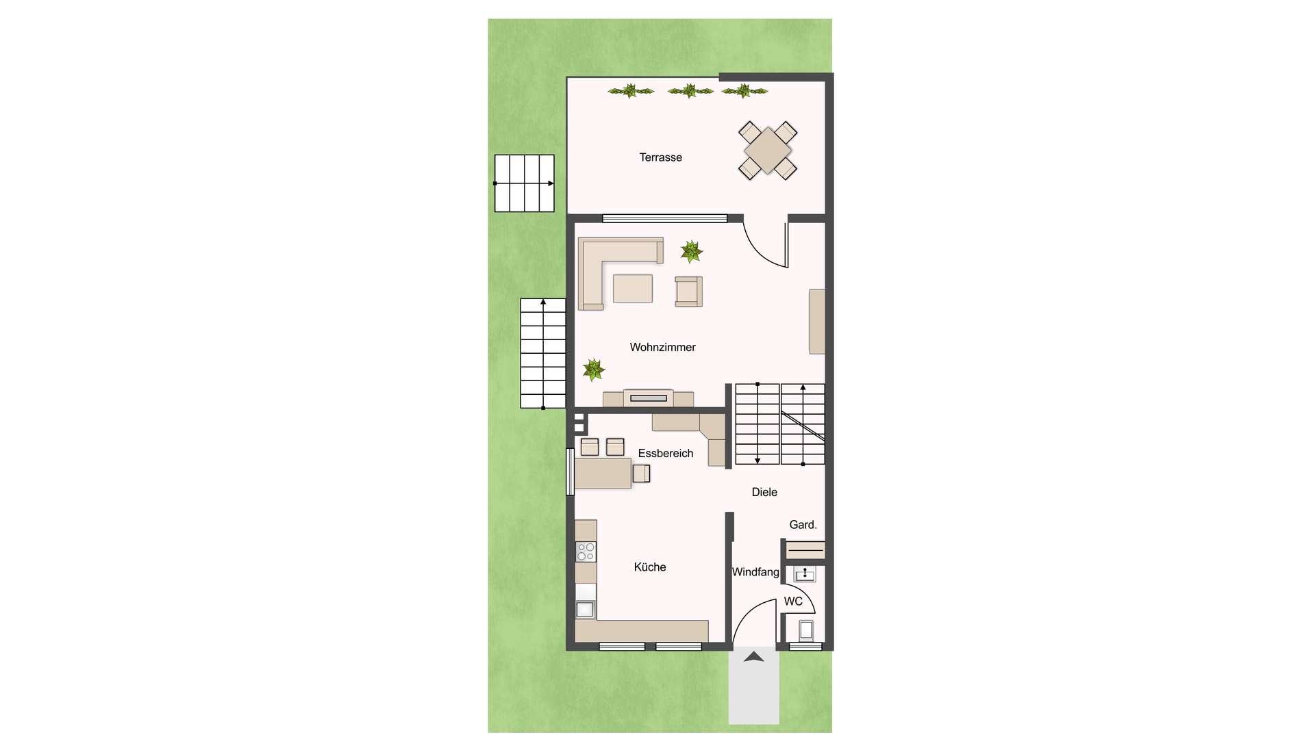 Innen überzeugt das Haus durch seine großzügige, lichtdurchflutete Raumaufteilung. Der Windfang mit Gäste-WC führt in die große Diele mit offenem Treppenhaus. Von hier aus gelangt man in die 22,50m² große Küche – perfekt für eine Inselküche mit Essbereich. Der offene Wohnbereich mit 29,33m² begeistert durch seine Fensterfront mit Zugang zur 19,53m² großen Bangkirai-Terrasse in Südwest-Ausrichtung. Im Obergeschoss erwarten Sie zwei helle Kinderzimmer, ein schönes Bad mit bodentiefer Dusche und Badewanne sowie das eindrucksvolle Elternschlafzimmer mit überdurchschnittlicher Deckenhöhe und Blick in den Garten. Ein weiteres Zimmer kann als Büro oder Gästezimmer genutzt werden. Im Untergeschoss befinden sich Technikraum, Abstellraum und ein separates Gästezimmer – alle mit Tageslicht, teils mit eigenem Außenzugang.