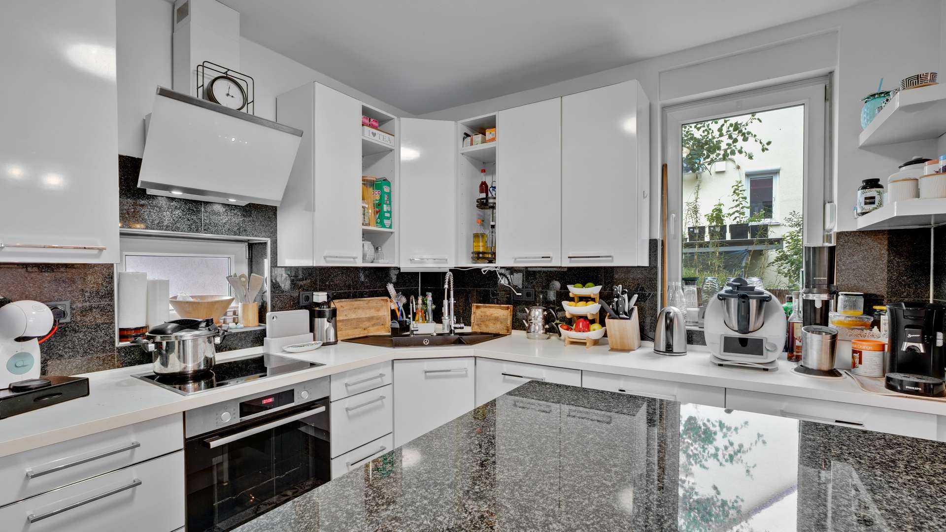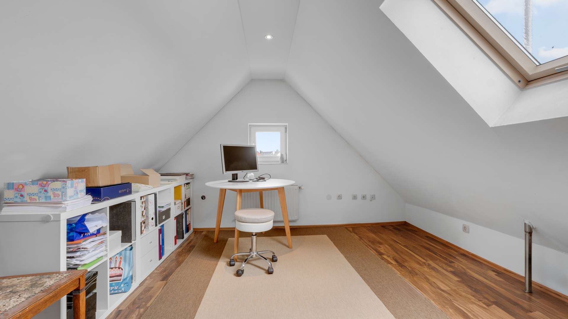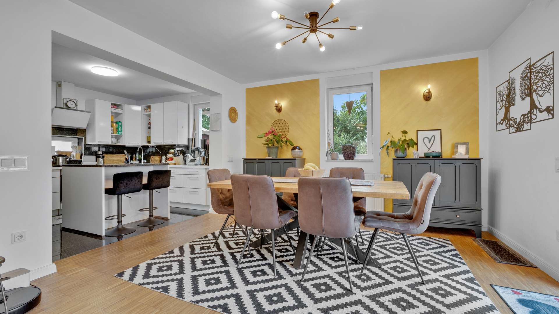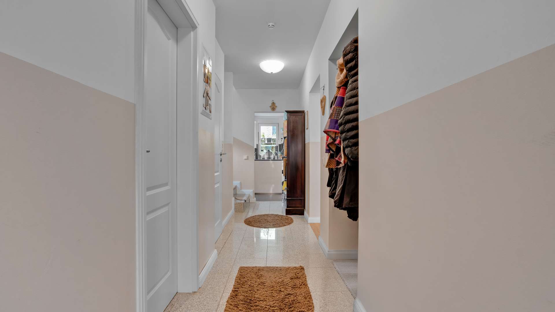Im Erdgeschoss erwartet Sie ein großzügiger, lichtdurchfluteter Wohn- und Essbereich mit 39m², hochwertigem Kamin mit Marmorverkleidung und direktem Zugang zur überdachten 41m² großen Südterrasse mit Feuerstelle. Die offene Inselküche mit hochwertigen Materialien ist im Kaufpreis enthalten. Ergänzt wird das Erdgeschoss durch einen Windfang, ein Gäste-WC mit vorbereitetem Abfluss für eine Dusche sowie Marmorfensterbänke und eine Raumhöhe von 2,51m. Im Obergeschoss befinden sich drei Schlafzimmer – darunter ein 20m² großes Elternschlafzimmer – sowie ein komfortables Badezimmer mit Dusche, Badewanne und Handtuchheizkörper. Der vollständig ausgebaute Spitzboden eignet sich ideal als Kinder- oder Lesezimmer. Im beheizten Keller mit 35,79m² Nutzfläche finden Sie neben dem Wäscheraum auch einen WC-Anschluss und edle Granitfliesen.