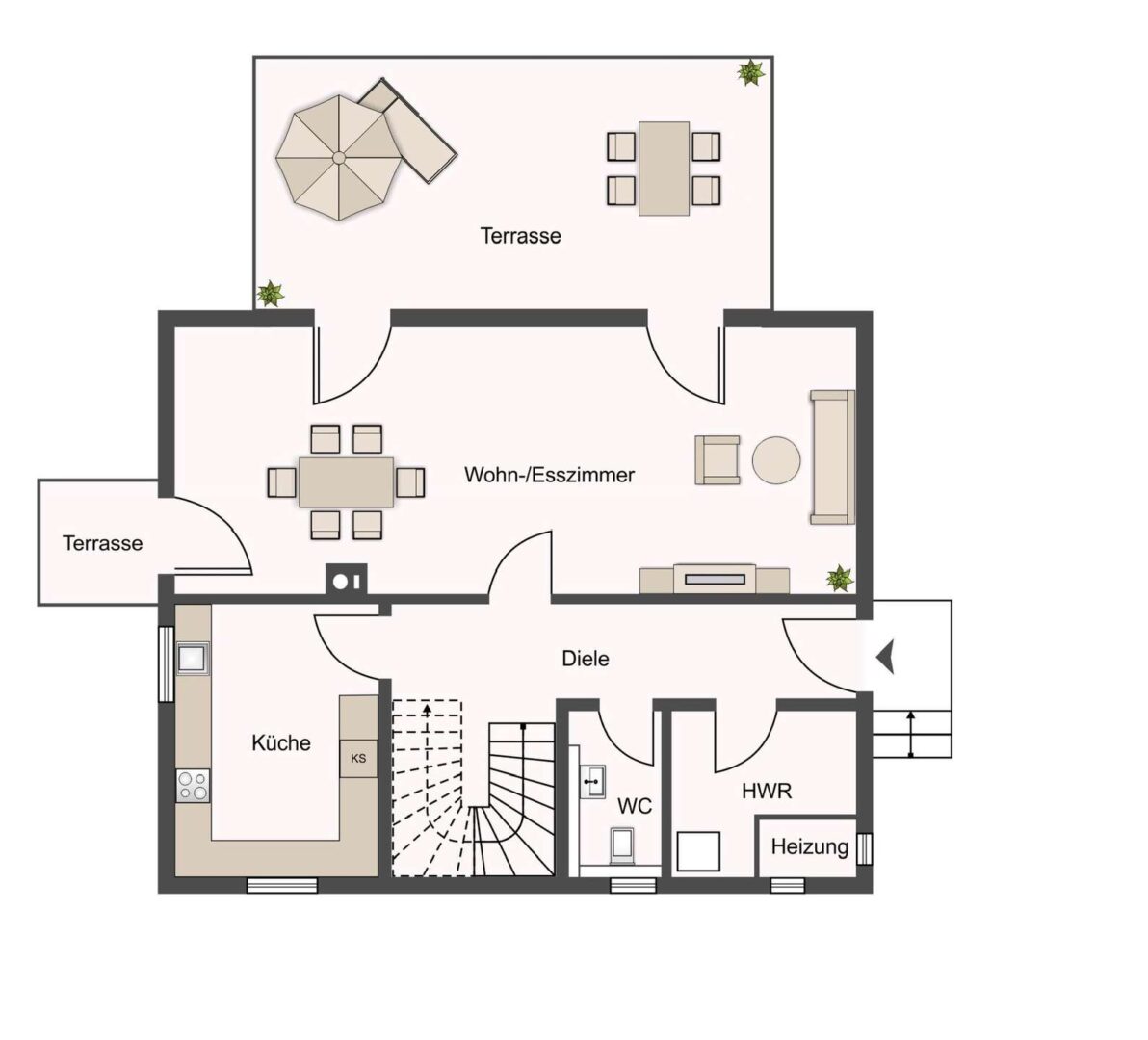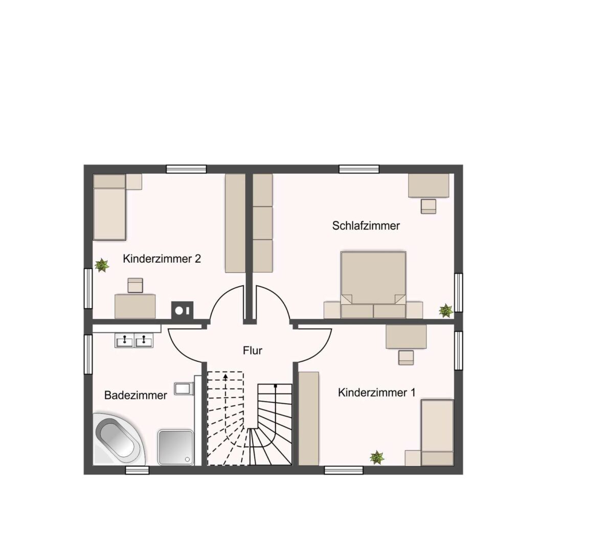 Im Erdgeschoss empfängt eine großzügige Diele mit Gäste-WC und separatem Hauswirtschaftsraum, ausgestattet mit Entkalkungsanlage sowie Anschlüssen für Waschmaschine und Trockner. Der offene, lichtdurchflutete Wohn- und Essbereich mit 34,60m² und bodentiefen Fenstern bietet direkten Zugang zu zwei Terrassen – einer Nordterrasse mit 5,51m² sowie einer großzügigen Ostterrasse mit 25,73m² und herrlicher Aussicht. Ein Kaminanschluss ist vorhanden. Die hochwertige Einbauküche mit Siemens-Geräten ist offen in den Wohnbereich integriert und im Kaufpreis enthalten. Im Obergeschoss befinden sich drei helle Schlafzimmer, ein Elternschlafzimmer mit 19,24m² und zwei Kinderzimmer mit je 14,80m² und bodentiefen Fenstern sowie ein elegant gefliestes Badezimmer mit bodengleicher Regendusche, Eckbadewanne und großem Waschtisch. Auch hier setzen sich Deckenhöhe, Fußbodenheizung und großzügiger Schnitt fort – ohne Kniestock für maximalen Wohnkomfort.