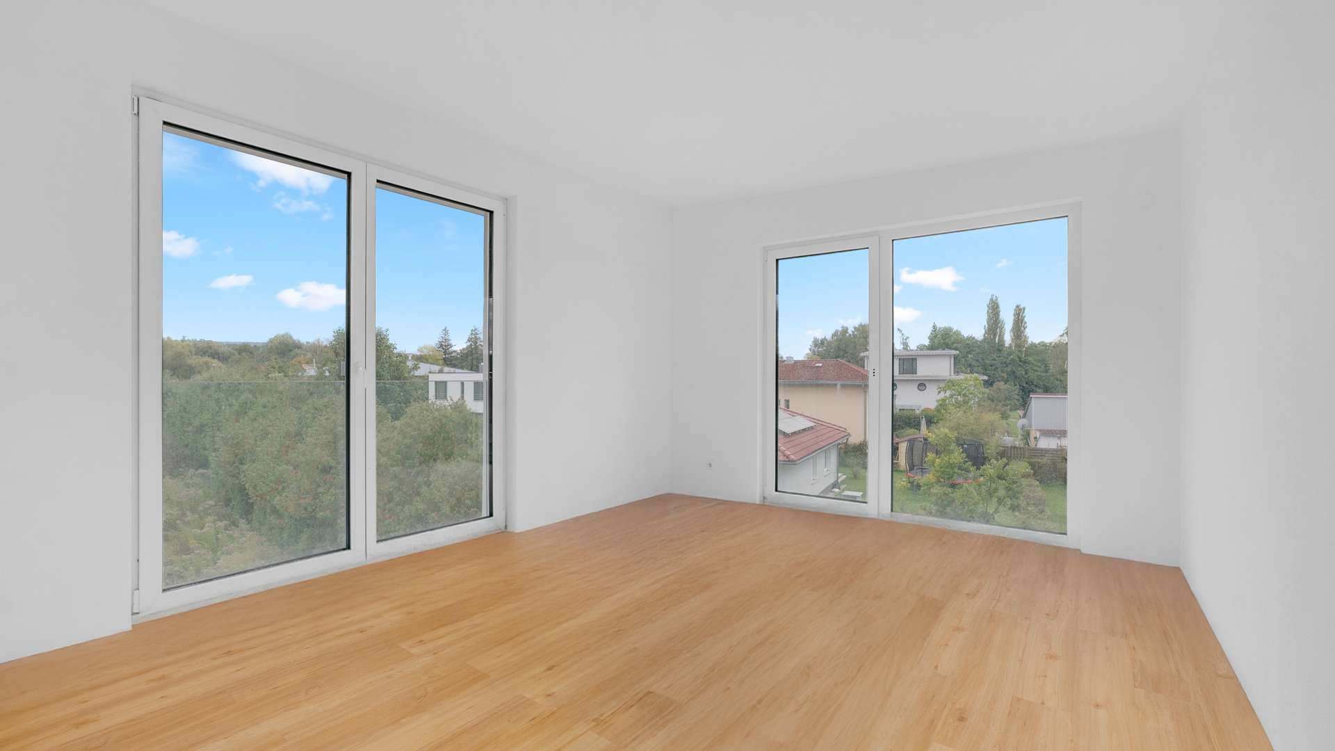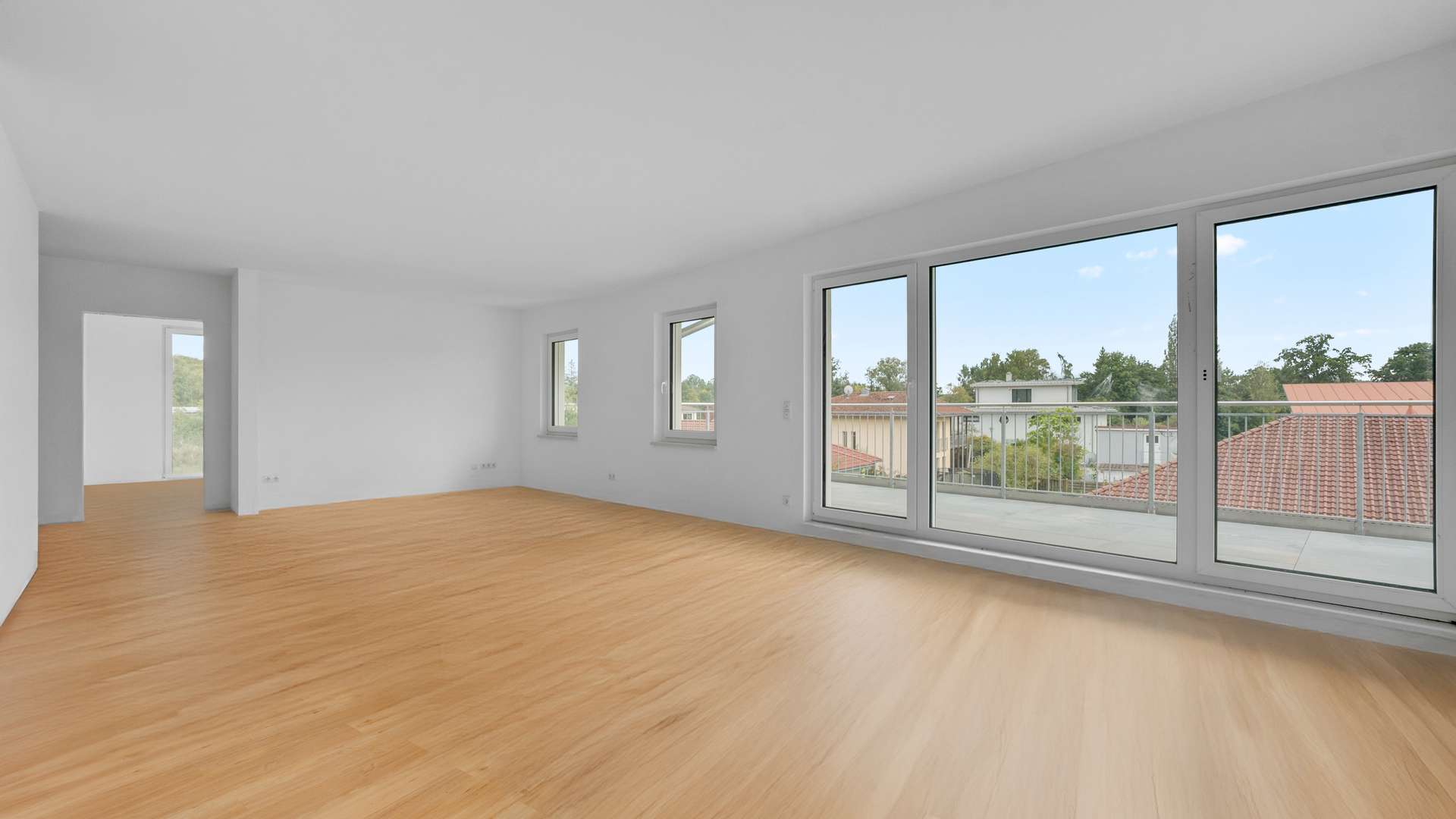 Die lichtdurchfluteten Räume sind optimal aufgeteilt und bieten hohen Wohnkomfort: Der großzügige Wohn- und Essbereich mit offener Küchenvorbereitung und bodentiefen Fensterfronten ist das Herzstück der Wohnung. Zwei gut geschnittene Kinder- oder Gästezimmer à ca. 17m² teilen sich ein modernes Bad mit bodengleicher Walk-in-Dusche, WC und Waschbecken. Das Elternschlafzimmer mit ca. 20m² bietet dank großer Fensterflächen auf zwei Seiten viel Licht, Morgensonne und direkten Zugang zum eleganten Masterbad mit Doppelwaschbecken und nach Wahl Dusche oder Wanne. Zwei praktische Abstellräume (ca. 4 und 2m²) sowie eine offene Diele mit Garderobenbereich runden das Raumkonzept ab. Die 38m² große Dachterrasse mit hochwertigem Steinbelag, zwei Zugängen sowie Ausrichtung nach Süden und Westen eröffnet spektakuläre Ausblicke und lädt zum Entspannen ein. Ein eigenes Kellerabteil mit Stromanschluss sowie ein Waschraum mit eigenem Anschluss für Waschmaschine und Trockner ergänzen das Angebot. Fahrräder finden bequem Platz im großzügigen Fahrradkeller. Auf Wunsch stehen bis zu zwei Außenstellplätze mit Wallbox-Vorbereitung (je 10.000€) zur Verfügung.