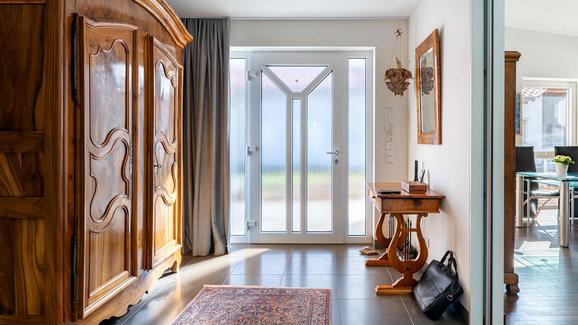 Das Penthouse liegt in der obersten Etage eines hochwertig erbauten Hauses aus dem Jahr 2001. Die beiden unteren Etagen werden gewerblich genutzt, darüber befindet sich die abgeschlossene Penthouseschicht mit eigenem Innenhof und privaten Zugängen zu jeder Wohneinheit. Zwei Aufzüge ermöglichen einen komfortablen Zugang. Die massive Bauweise, durchdachte Barrierefreiheit und die direkte Verbindung zur Therme sprechen für ein durchweg hochwertiges Wohnumfeld. Gemeinschaftlich genutzte Bereiche sind sauber strukturiert und schaffen ein ruhiges, diskretes Wohnklima auf gehobenem Niveau.