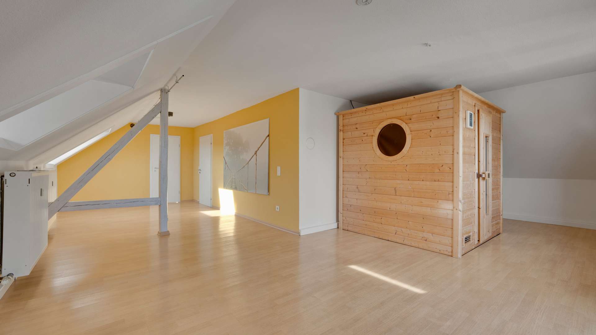Die Wohneinheiten präsentieren sich großzügig, hell und hochwertig ausgestattet. Die 209m² große Hauptwohnung überzeugt im Erdgeschoss mit einem einladenden Windfang mit Natursteinfliesen, einem stilvollen WC, einem geräumigen Arbeitszimmer sowie dem lichtdurchfluteten Wohn-/Essbereich mit Kaminofen und Zugang zum Balkon. Die offene Küche mit weißen Fronten und modernen Fliesen fügt sich harmonisch ein. Im Obergeschoss erwarten Sie Gäste- und Schlafzimmer, ein weiteres Arbeitszimmer, Küche, zwei Abstellräume, Badezimmer sowie ein großzügiger Wohn-/Essbereich mit Sauna und Zugang zur 20m² großen Dachterrasse mit traumhafter Aussicht. Für den weiteren Platzbedarf sorgt die separate 78m² große Wohnung mit Diele, großem Wohn-/Esszimmer und Küche mit Speisekammer im Erdgeschoss, sowie einem tollen Schlafzimmer und separatem Bad im Untergeschoss. Die 46m² große Einliegerwohnung im Untergeschoss umfasst ein gemütliches Wohnzimmer, ein schönes Schlafzimmer und ein Badezimmer. Ergänzend dazu stehen im Untergeschoss weitere Keller- und Abstellräume zur Verfügung.
