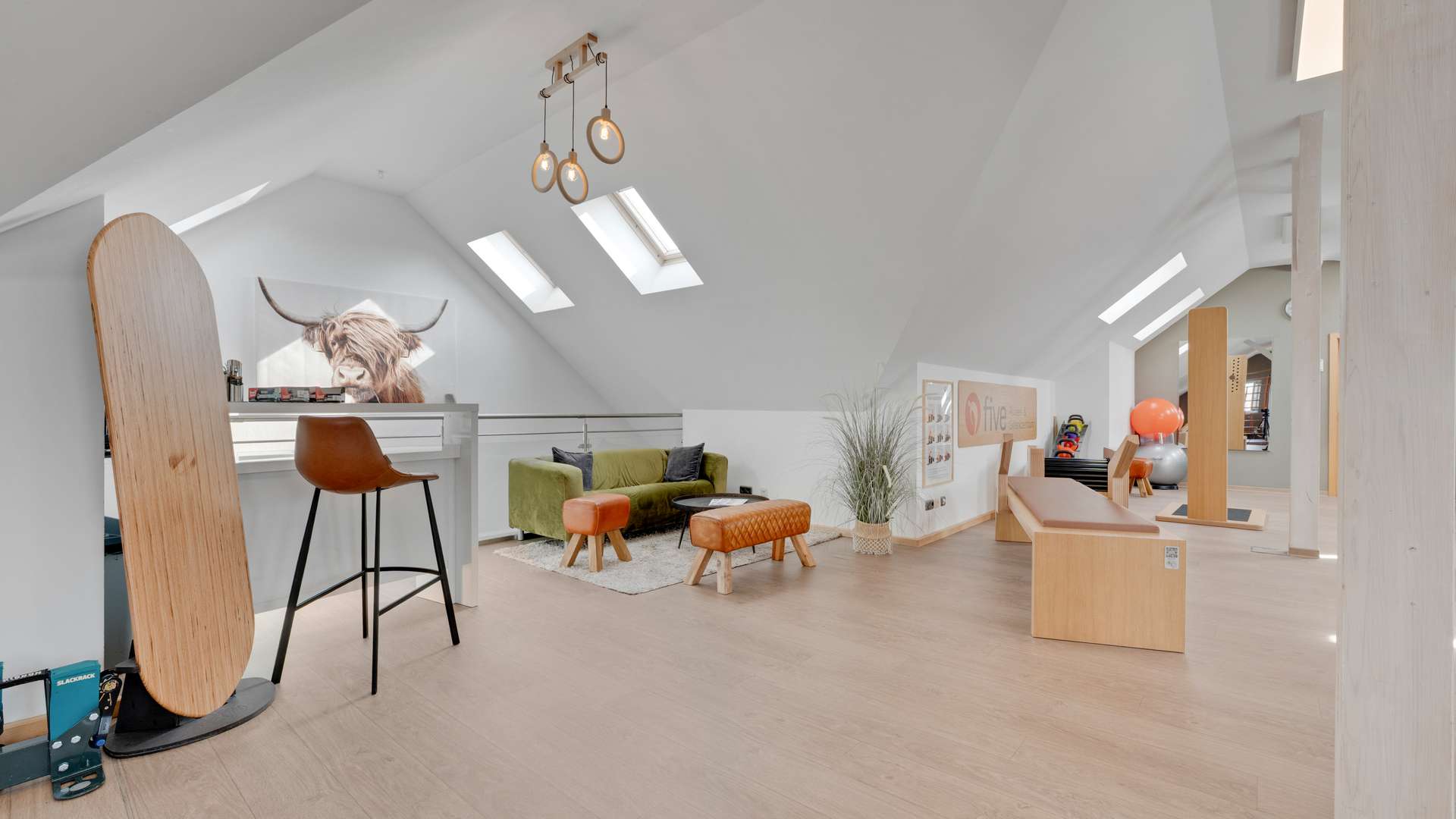 Das viergeschossige Gebäude ist voll unterkellert und verfügt über eine durchdachte Grundstruktur. Das Erdgeschoss beherbergt eine großzügige Gewerbeeinheit mit 399,81m². Im 1. Obergeschoss befinden sich die zwei Wohnungen mit 74,81m² und 58,23m². Die Gewerbeeinheit GE2 mit 623,76m² erstreckt sich über das 1. und 2. Obergeschoss und das Dachgeschoss und ist miteinander verbunden. Auf der zweiten Etage befindet sich eine weitere Gewerbeeinheiten mit 93,34m², während sich im Dachgeschoss weitere gewerbliche Flächen befinden, die in Kombination auf bis zu 237,17m² erweitert werden können. Über eine Wendeltreppe sind für einige Gewerbeflächen zusätzliche Galeriebereiche im Dachgeschoss zugänglich.