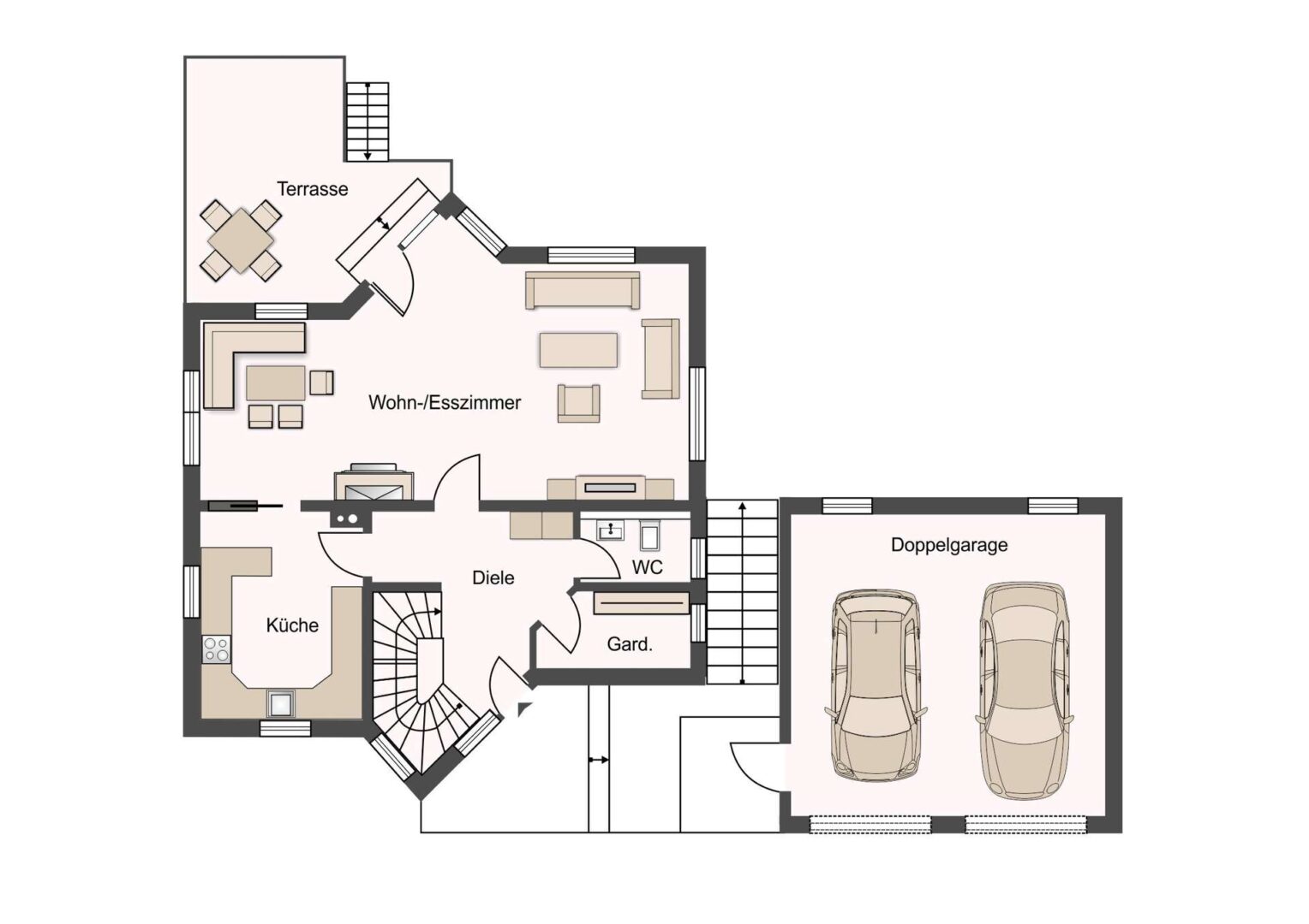 - Doppelgarage mit Strom, Fenster, Dachboden, Sektionaltor