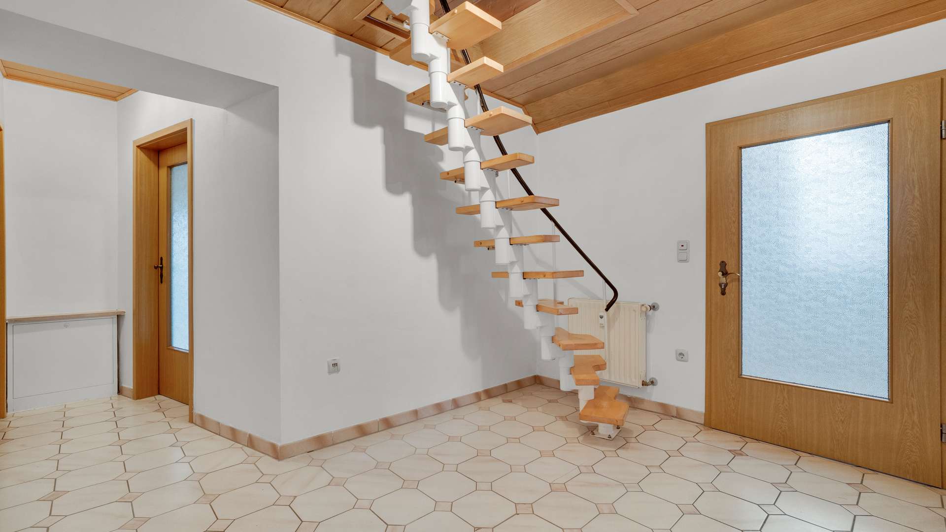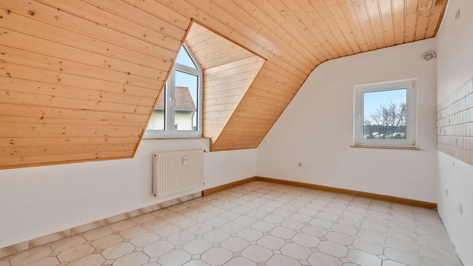 Im Erdgeschoss erwartet Sie eine helle, funktionale 3-Zimmer-Wohnung mit Diele, moderner Küche, Kinderzimmer, Badezimmer, Schlafzimmer und Wohnzimmer mit Zugang zur Terrasse und dem Garten. Das Badezimmer verfügt über eine Badewanne, ein WC und ein Waschbecken und bietet ausreichend Tageslicht. Im Obergeschoss bietet die zweite Einheit mit ähnlichem Grundriss zusätzlich einen Balkon mit schönem Holzgeländer. Die Küche ist bereits vorbereitet für Ihre individuelle Einbauküche, ganz nach Ihren Wünschen. Holzdecken, Glastüren und helle Räume sorgen für ein angenehmes Wohngefühl. Das ausgebaute Dachgeschoss erweitert den Wohnraum um ein charmantes Gästezimmer mit zusätzlichem Stauraum im Dachboden. Im Keller stehen neben einem Hauswirtschaftsraum mit Waschmaschinen- und Trockneranschlüssen zwei großzügige Kellerräume sowie ein Heizraum mit Öltank zur Verfügung.