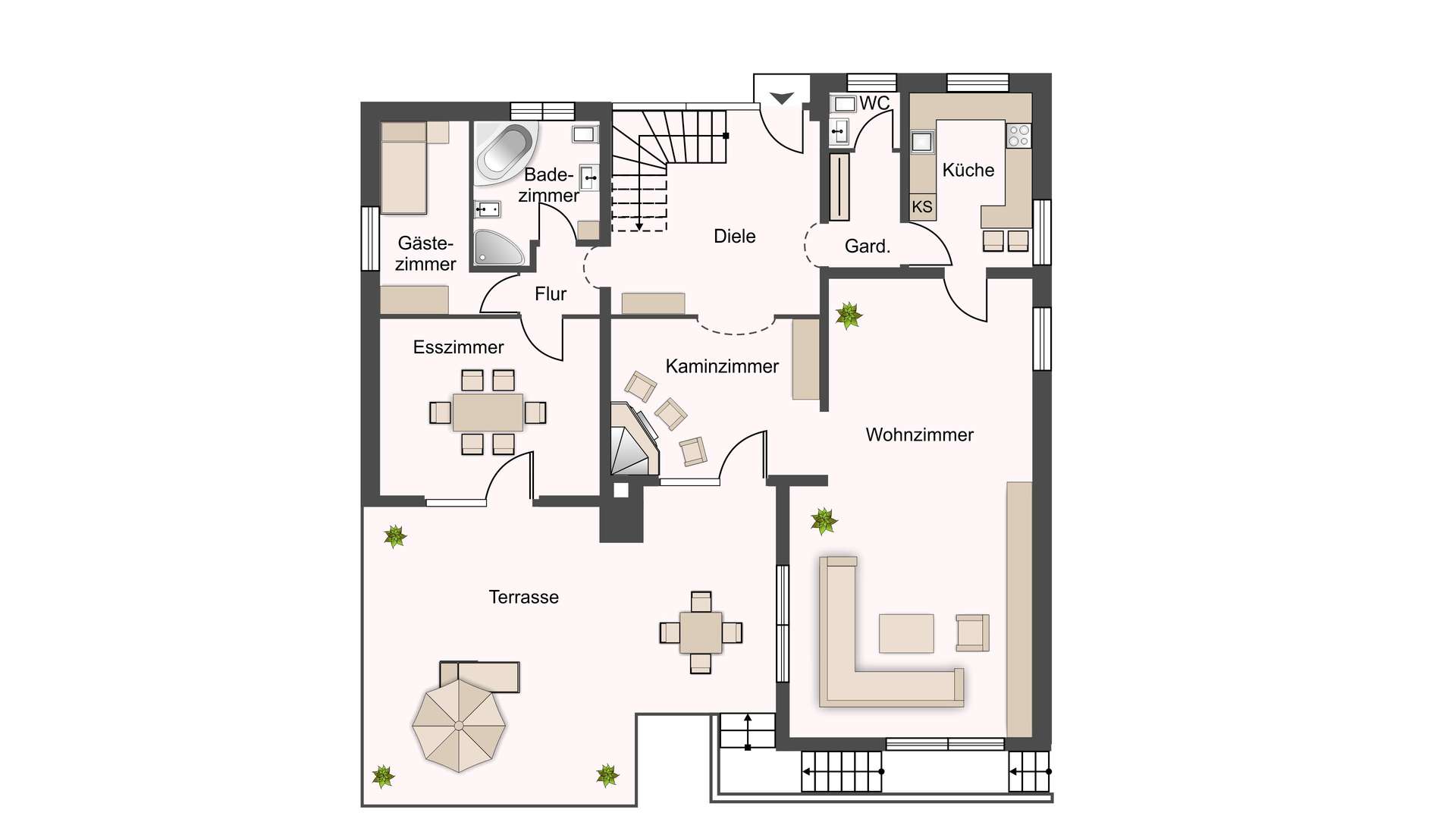 - Großzügige 53m² Terrasse mit Außenkamin