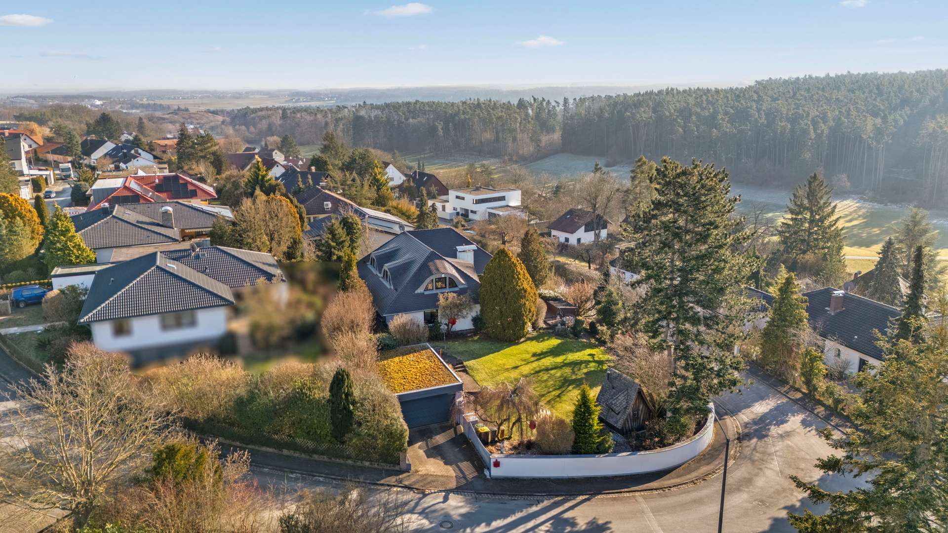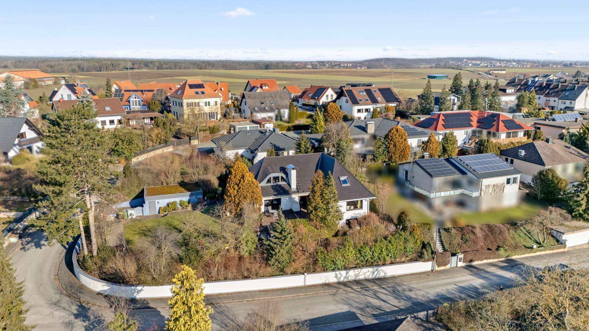 Inmitten eines ruhigen, gewachsenen Wohngebiets gelegen, befindet sich die Villa in einer der begehrtesten Lagen Zirndorfs – unmittelbar am Waldrand, umgeben von gepflegten Einfamilienhäusern und liebevoll angelegten Gärten. Die Nachbarschaft ist geprägt von familiärer Atmosphäre, freundlichem Miteinander und einer naturnahen Umgebung. Spaziergänge beginnen direkt vor der Haustür, Vogelgezwitscher ersetzt hier den Straßenlärm. Durch die Hanglage und die Einfriedung des Grundstücks genießt man ein hohes Maß an Privatsphäre – ideal für alle, die Rückzug und Ruhe schätzen, ohne auf urbane Annehmlichkeiten verzichten zu wollen.