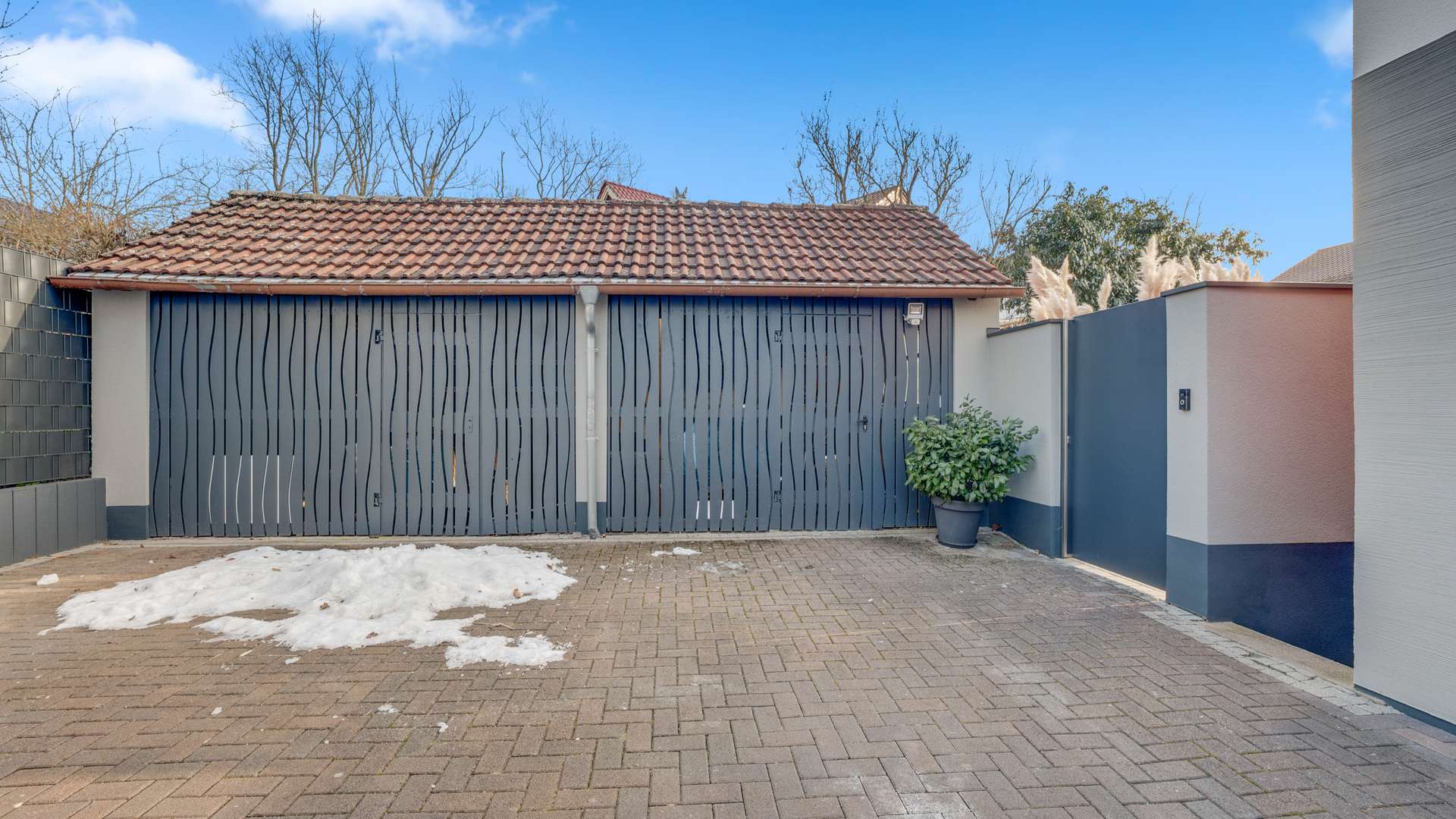 Das Haus umfasst drei Etagen mit einer Gesamtwohnfläche von 303m² und ist teilunterkellert. Das Dachgeschoss wurde 2016 hochwertig zu Wohnraum ausgebaut. Neben dem Hauptgebäude befinden sich auf dem 530m² großen Grundstück eine Doppelgarage mit elektrischem Sektionaltor, vier gepflasterte Außenstellplätze mit Stromanschluss und Videoüberwachung sowie ein Nebengebäude mit 59m² Nutzfläche auf zwei Etagen. Dieses ist bereits mit Strom erschlossen und verfügt über eine integrierte Garage – ideal für den künftigen Ausbau. Die traumhafte Gartenanlage und Terrasse mit Drainagebetonsteinen und Pergola, Anschlüssen für eine Outdoorküche inkl. Warm-/Kaltwasser sowie gepflegtem Rasen macht den Außenbereich zum absoluten Highlight.