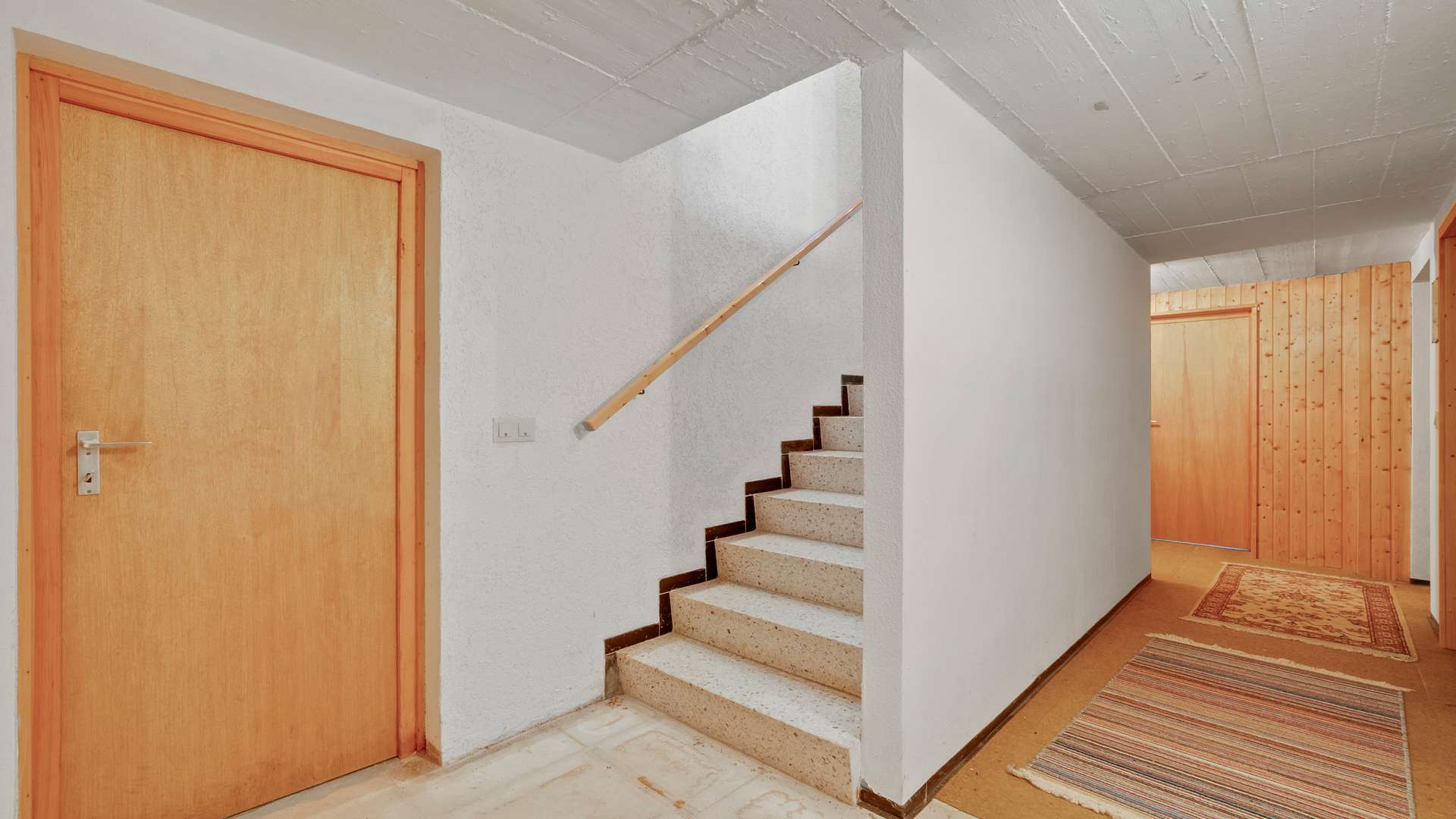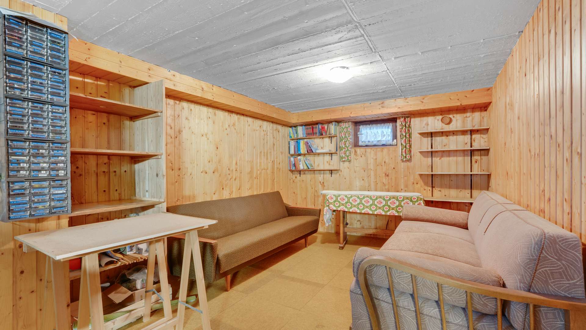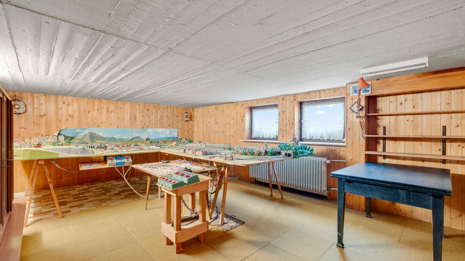 Im barrierearmen Erdgeschoss genießen Sie auf 2,44m Deckenhöhe einen durchdachten Grundriss: Der Windfang mit Garderobenplatz führt in den Flur, von dem alle Wohnräume zugänglich sind. Der großzügige Wohn-Essbereich glänzt mit Parkettboden, hellen Holzdecken und direktem Zugang zur Terrasse – ein Ort voller Gemütlichkeit und Licht. Die Küche mit zwei Fenstern bietet funktionalen Raum für die Zubereitung Ihrer Lieblingsgerichte. Ein Arbeitszimmer, ein Kinderzimmer, ein Elternschlafzimmer und ein voll ausgestattetes Badezimmer mit Fenster, Wanne und Dusche runden das Raumangebot ab. Der Keller begeistert mit vielseitiger Nutzbarkeit: Hobbyraum, Werkstatt oder Hauswirtschaftsräume – hier findet alles seinen Platz. Besondere Highlights sind der beheizte Hobbyraum sowie das zusätzliche WC im Untergeschoss.