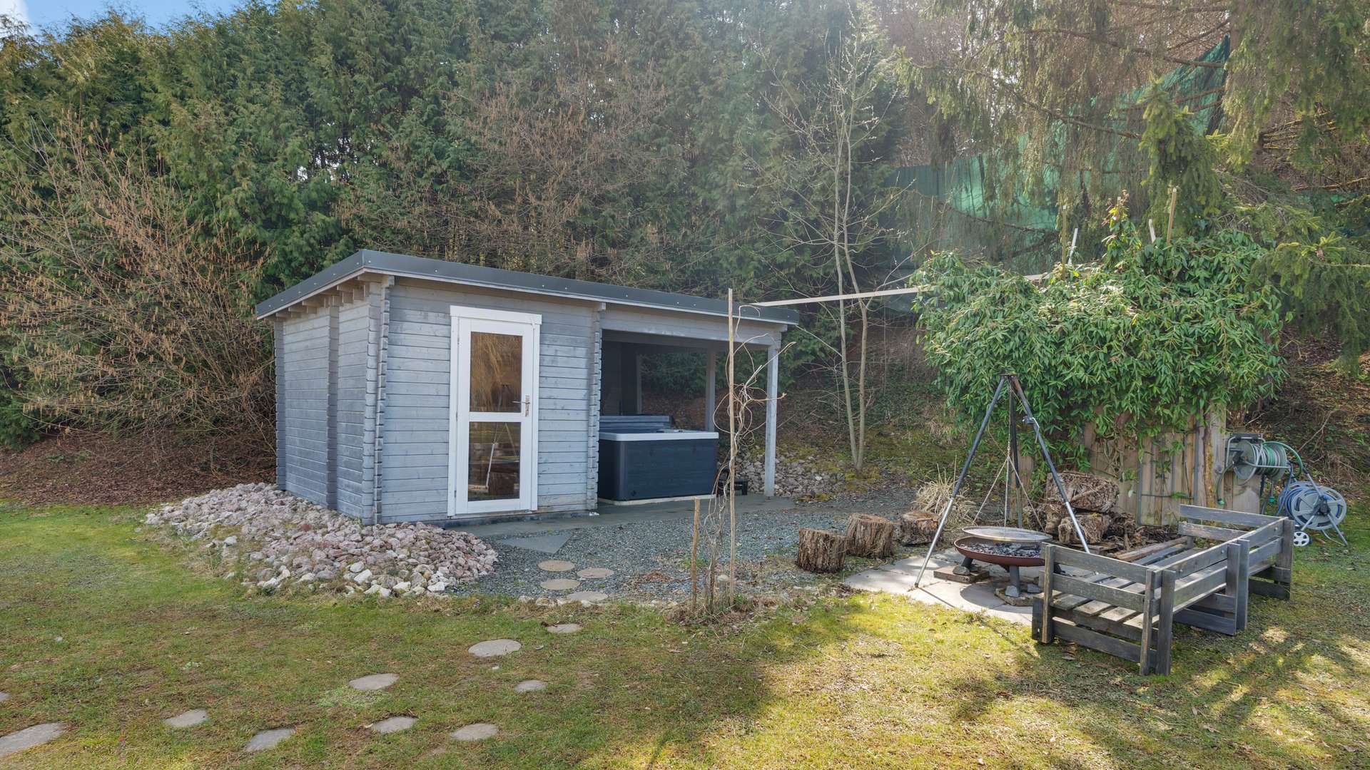 2020: Gestaltung des Wellnessbereichs mit Sauna, Außendusche und Jacuzzi